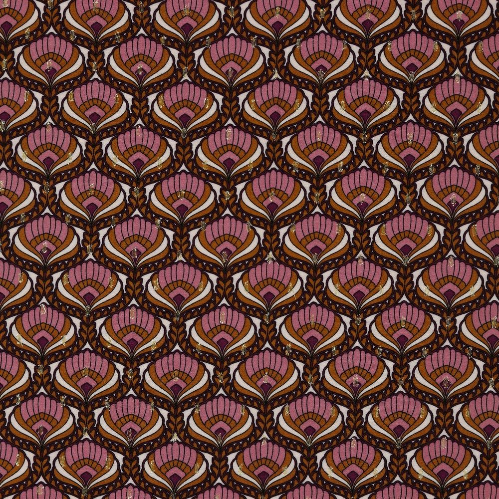 Bekleidungsstoff Viskose Radiance Retro Muscheln Aubergine GLITZER