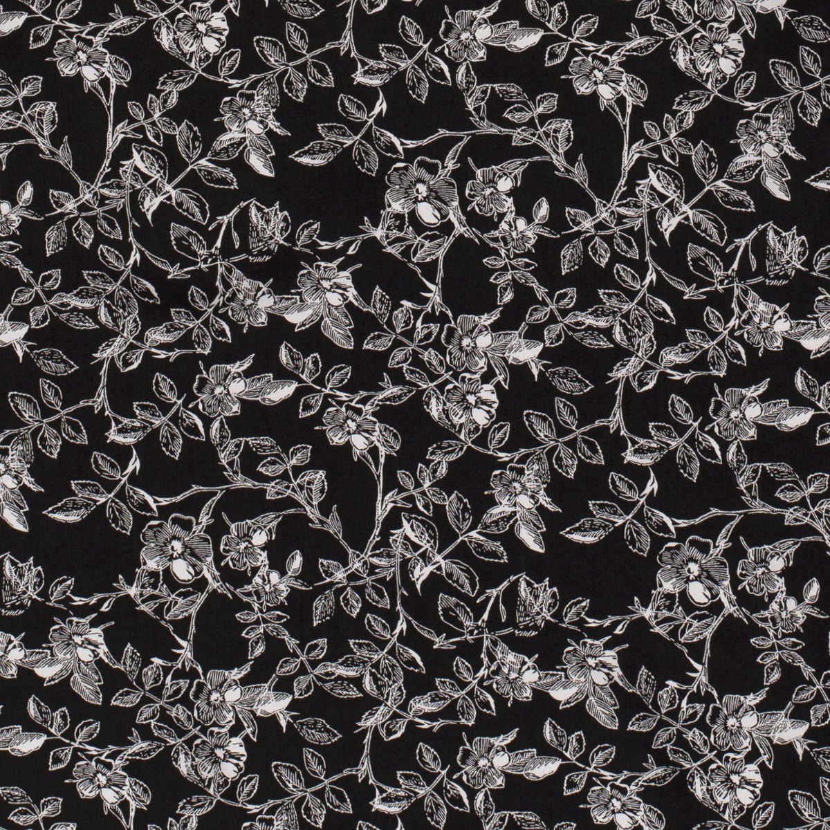 Bekleidungsstoff Viskose Rosenhecke auf Schwarz
