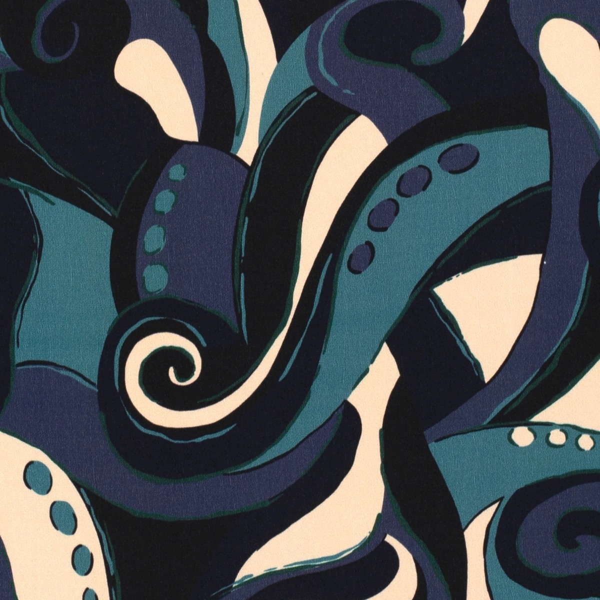Bekleidungsstoff Viskose - Satinstoff Abstraktes Schnörkelmuster mit Hellpetrol Digital