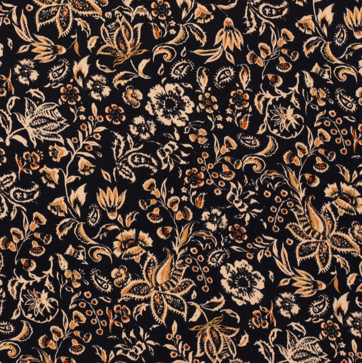 Bekleidungsstoff Viskose - Satinstoff Blumenranken Beige auf Schwarz Digital
