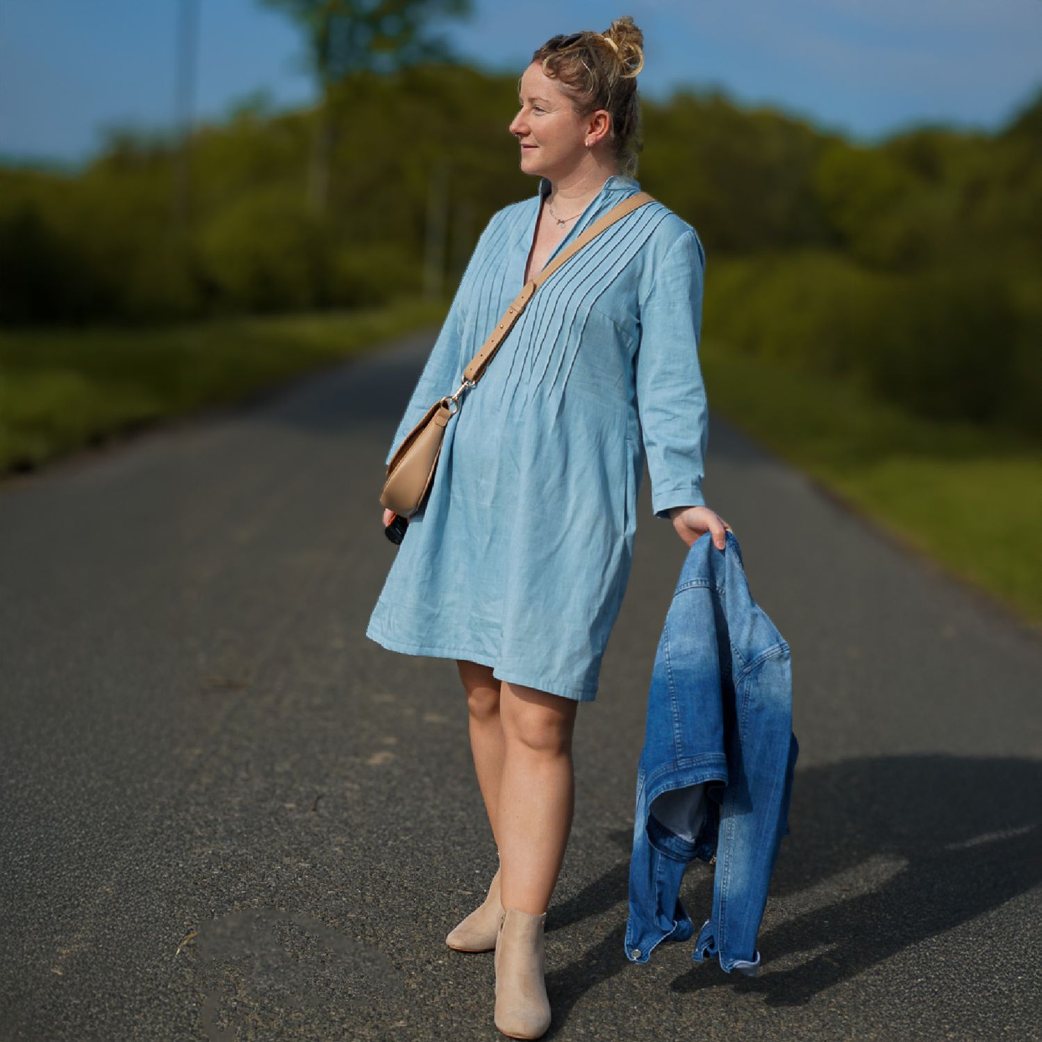 - Der Schnitt ist auf Webware ausgelegt, besonders geeignet sind Leinen, Modal, Tencel, leichte Baumwollstoffe, etc. Bordürenstoffe können hier ideal verarbeitet werden.