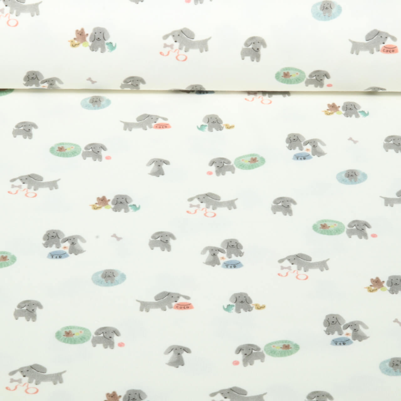 Bio Jersey - Digital Kleine Hunde Ecru