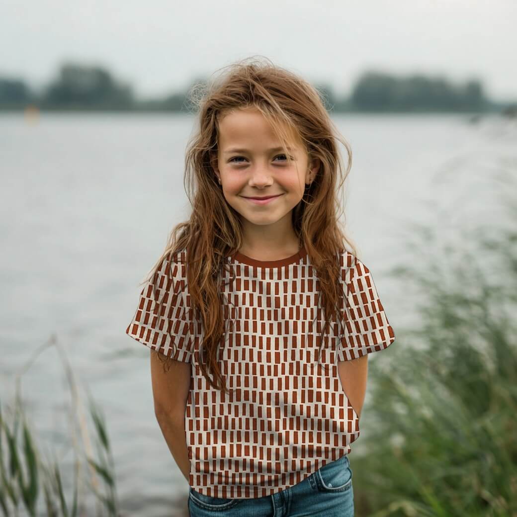 Bio Jersey Natural - Geo Rechtecke Natur Rost