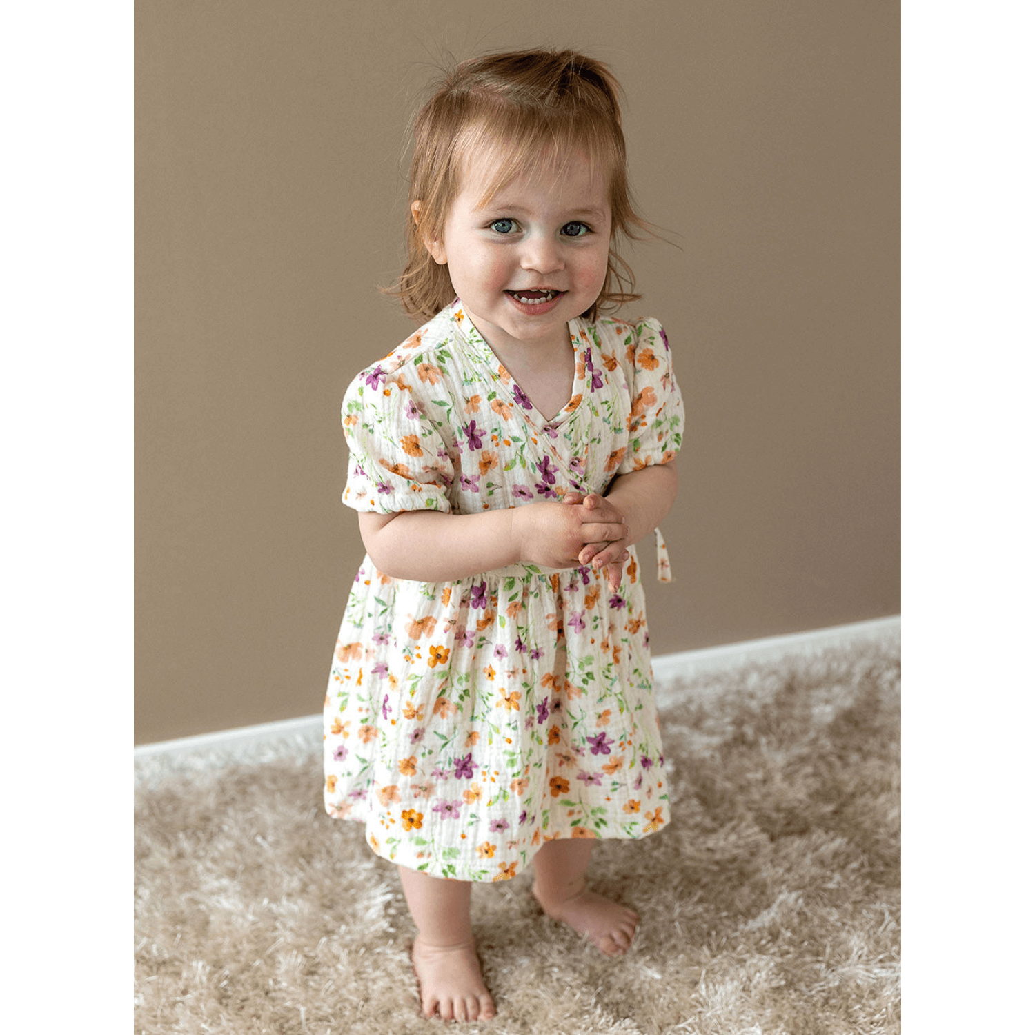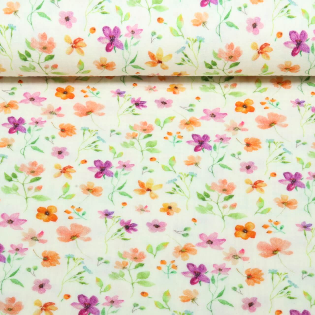 Bio Musselin Natural - Digitaldruck Aquarellblumen Ecru