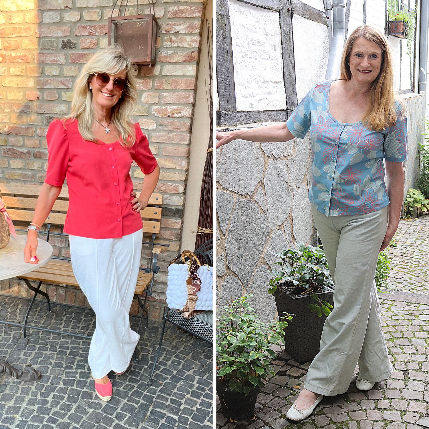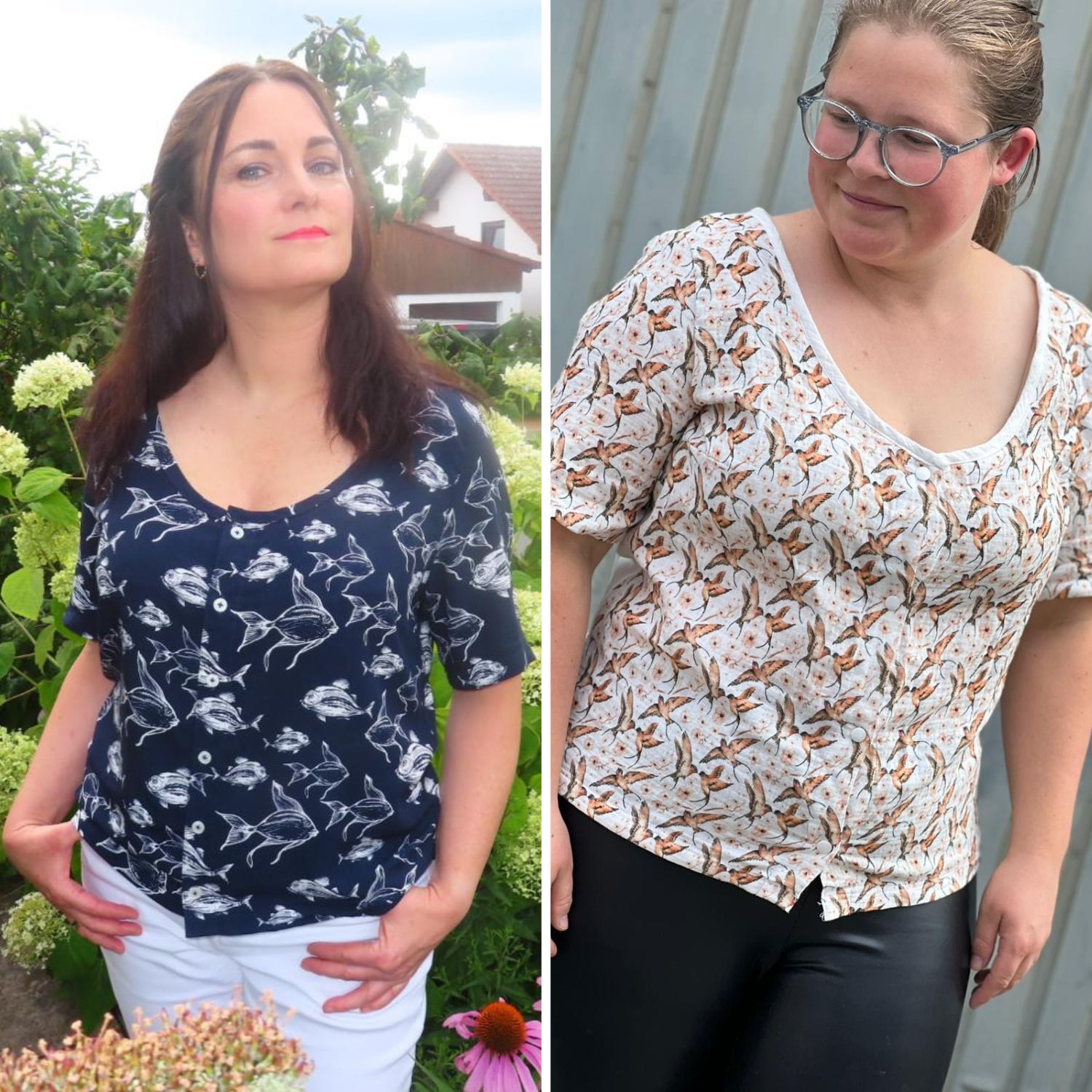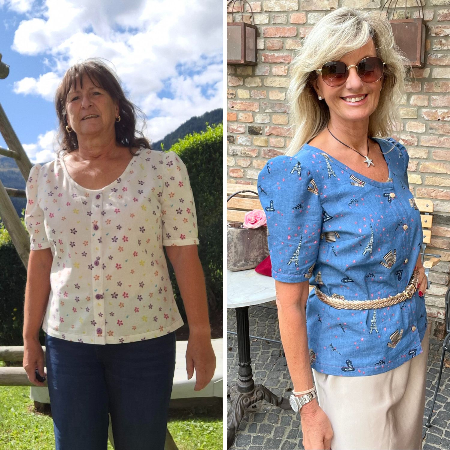 Du kannst zwischen zwei Ärmelvarianten wählen: Ein klassischer kurzer Ärmel für einen klaren Look – oder eine Variante mit hoher, geraffter Armkugel, wenn es etwas verspielter oder romantischer sein darf. So kannst du den Stil der Bluse ganz individuell bestimmen.
