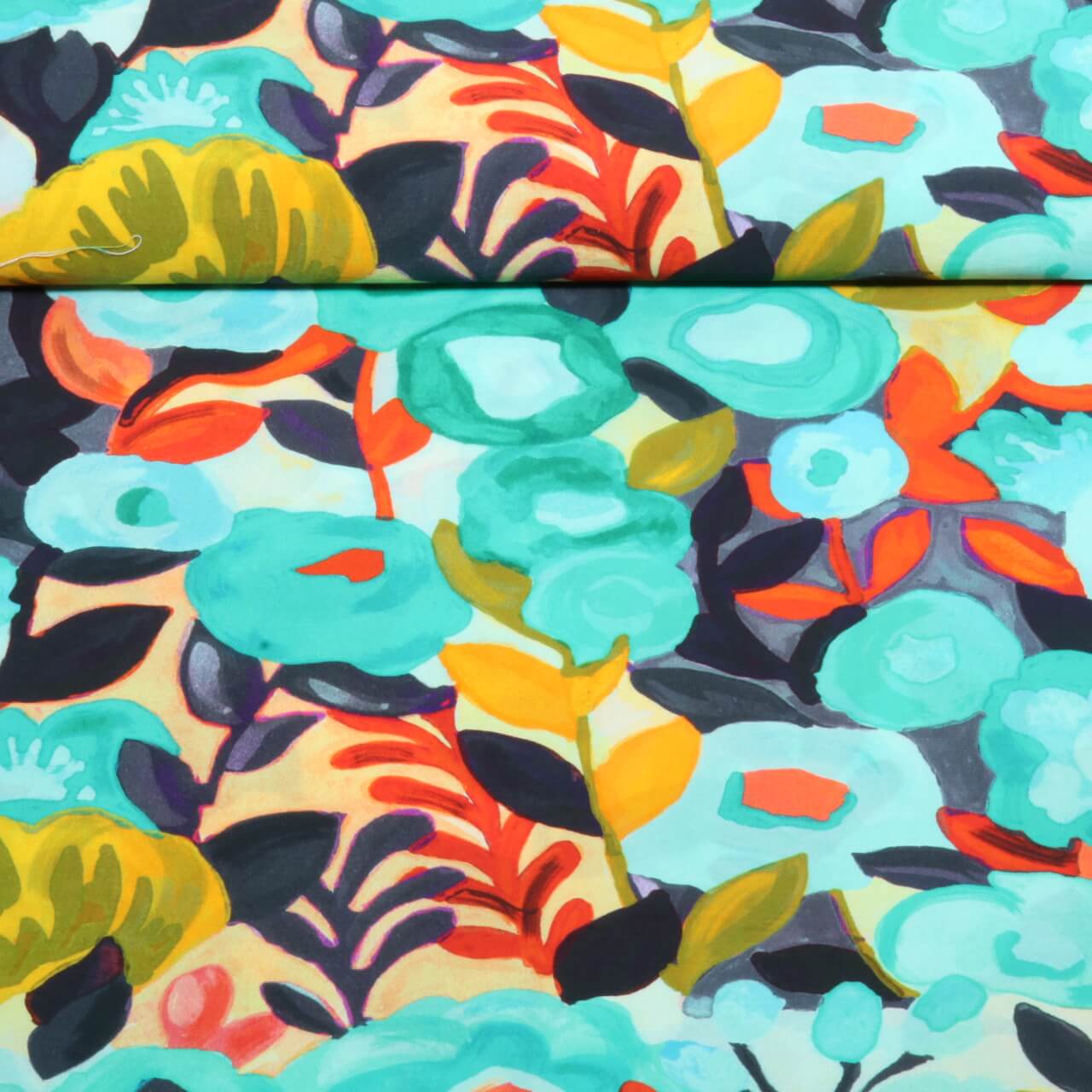 Blusen- & Kleiderstoff - Bunte Blumen Grün