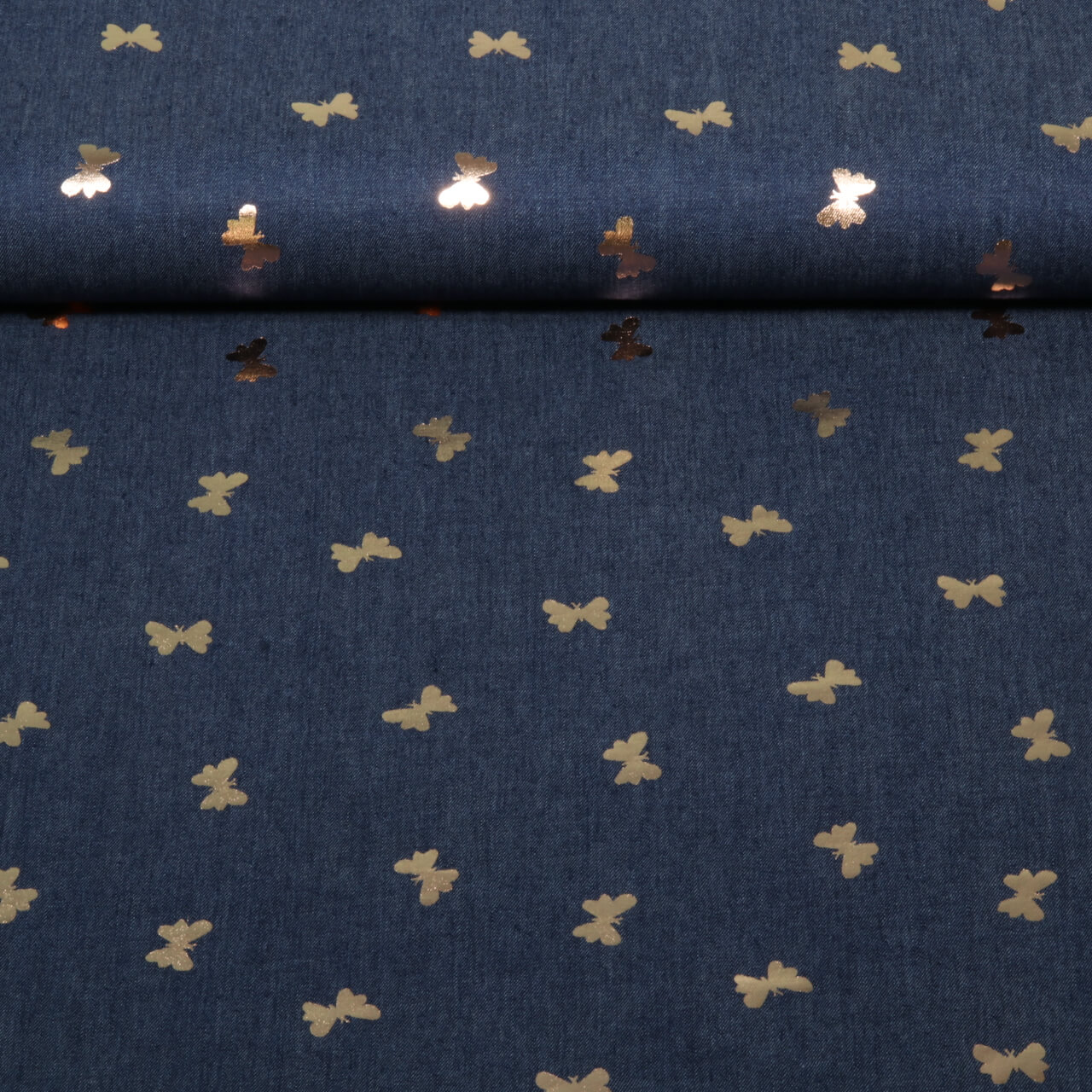 Blusenjeans - Foil Print Schmetterlinge Blau Gewaschen