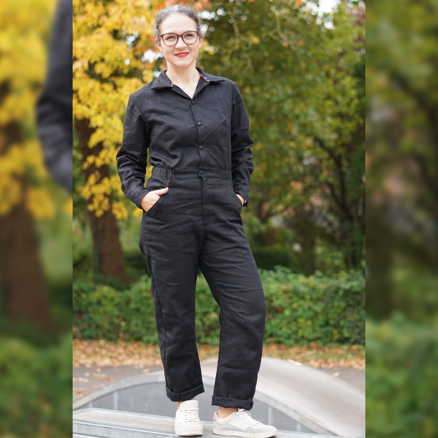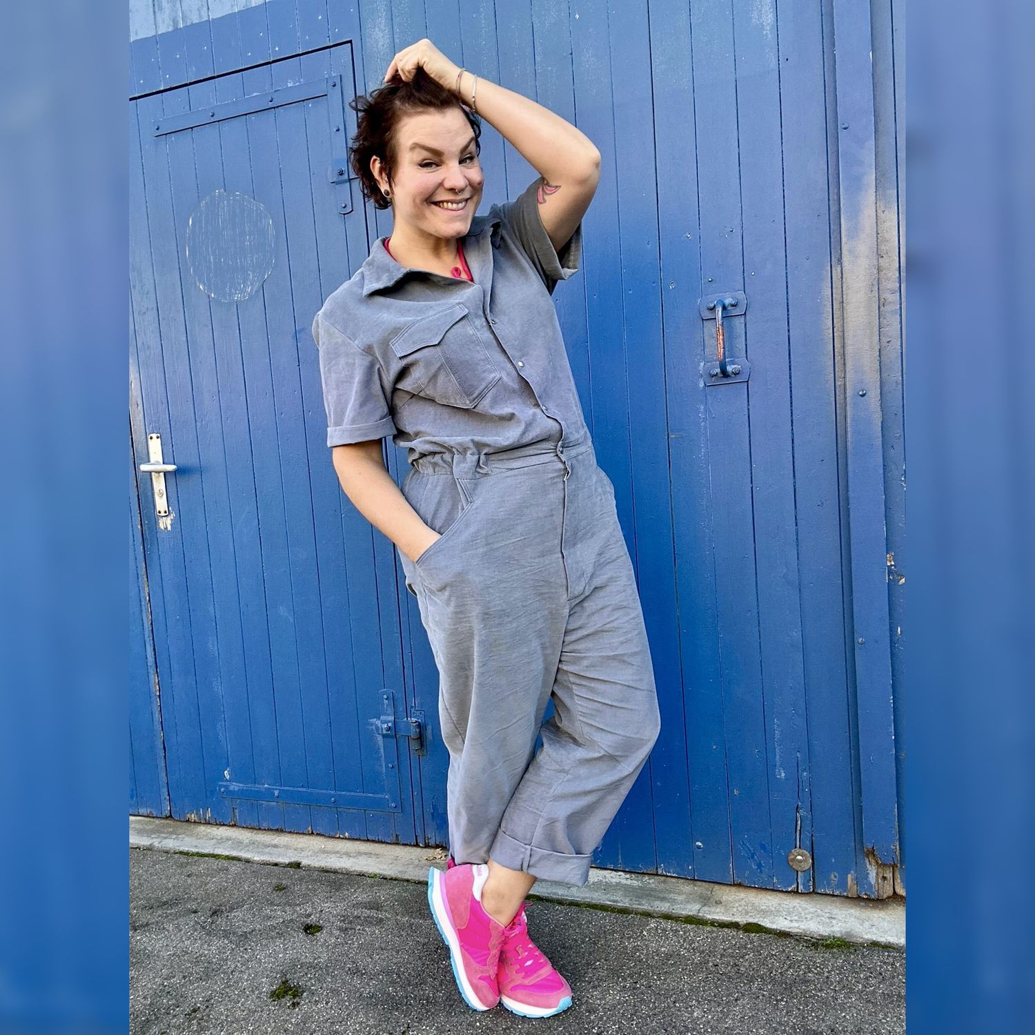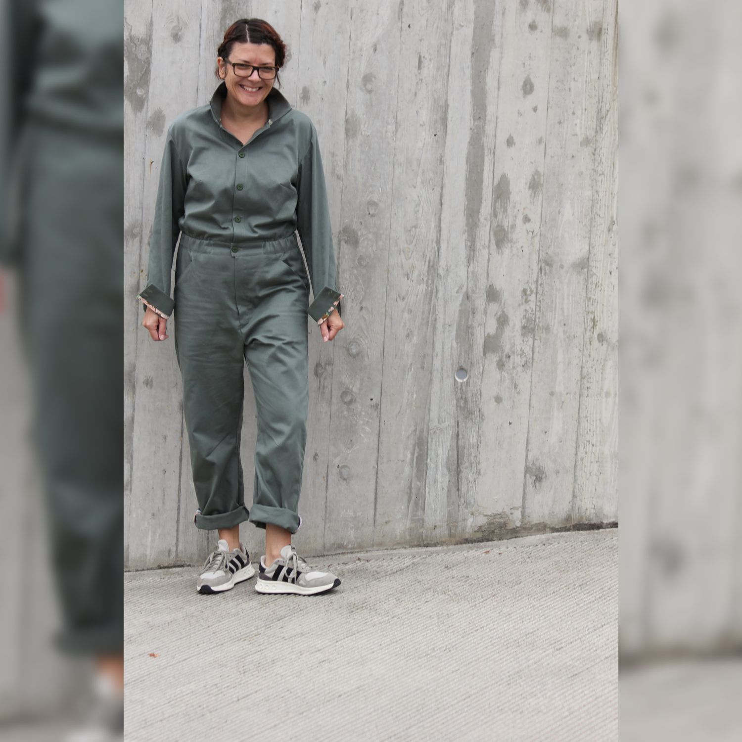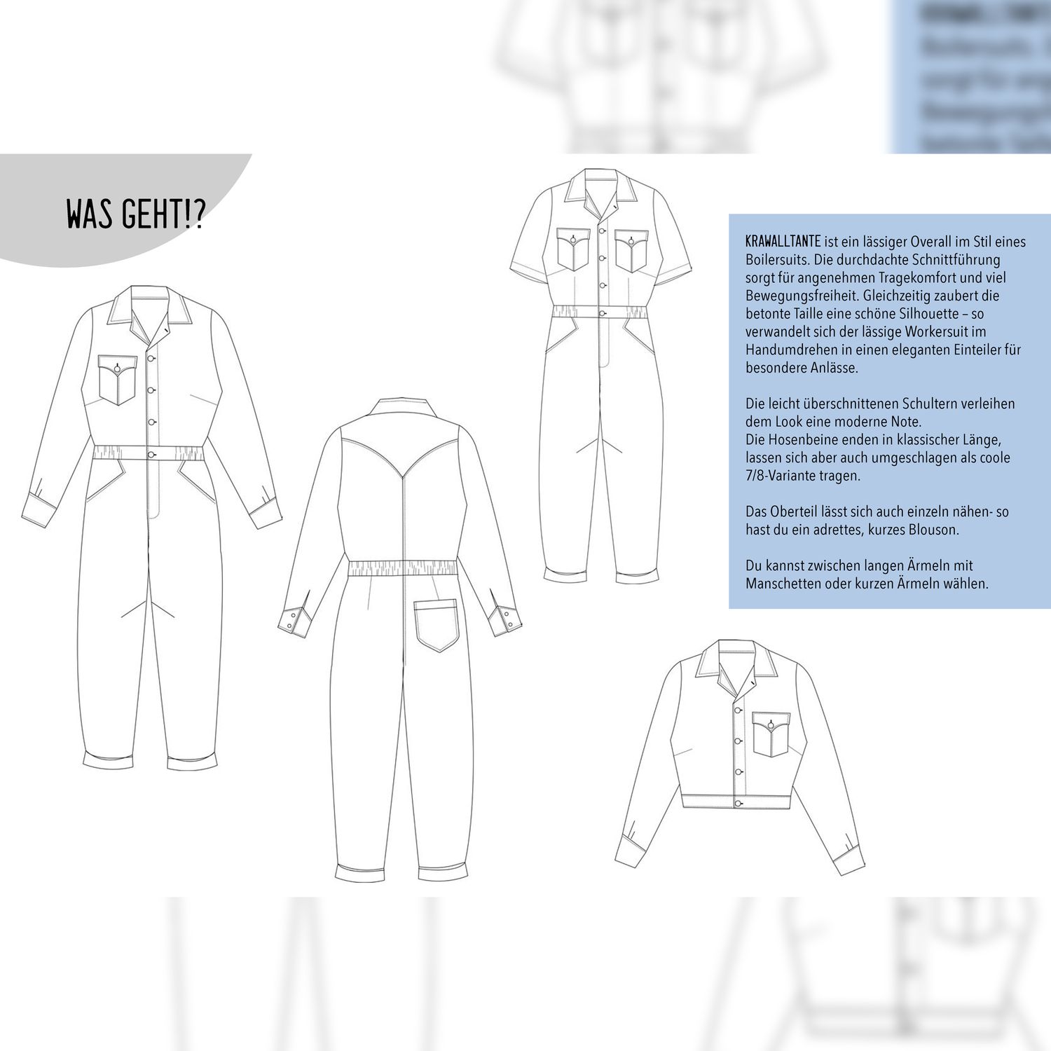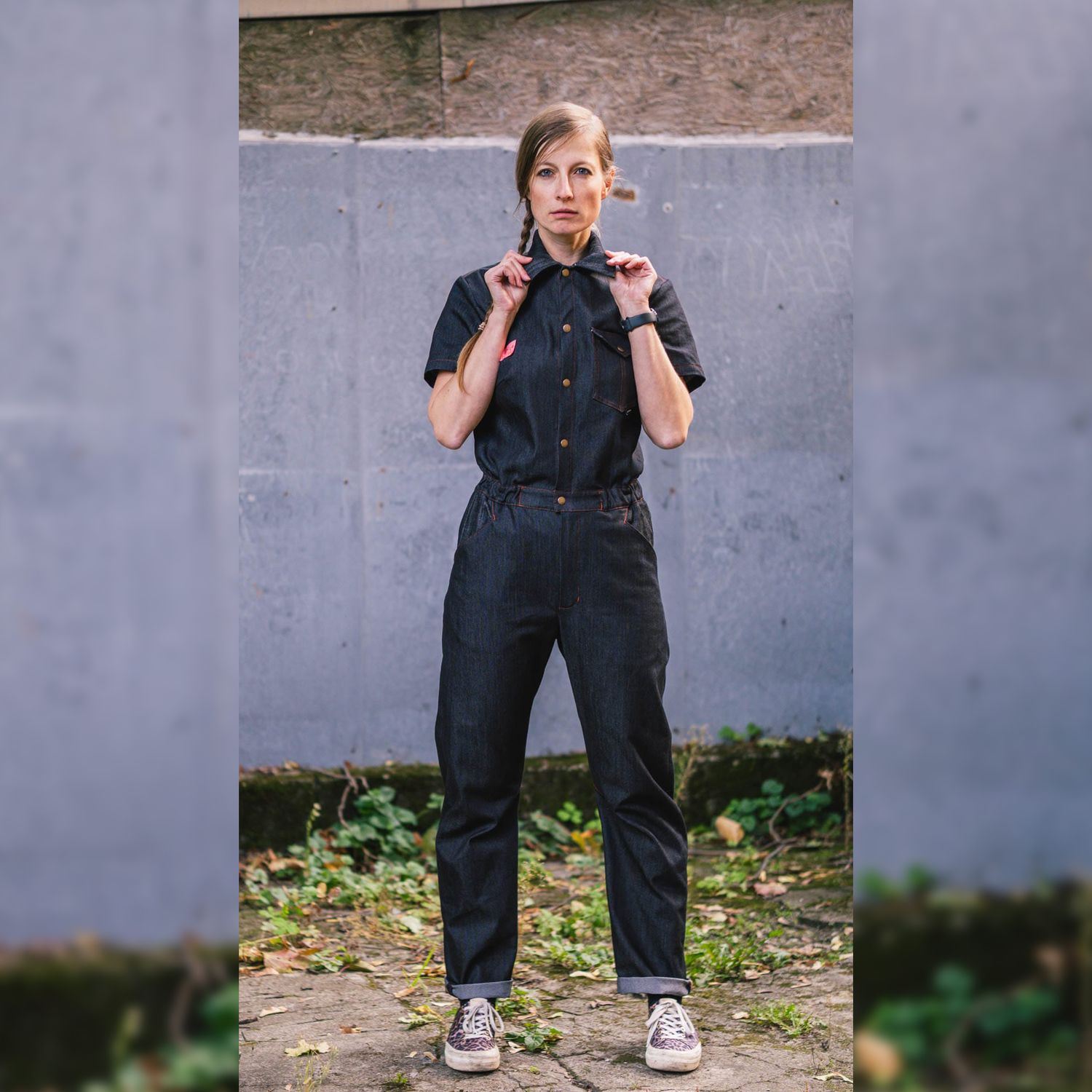 Die Krawalltante ist ein lässiger Overall im Stil eines Boilersuits. Der Boilersuit ist ein Einteiler, inspiriert von klassischen Arbeitsanzügen. Ursprünglich für Mechaniker und Handwerker entworfen, steht er heute für modernen Komfort und einen unaufgeregten Utility-Look.