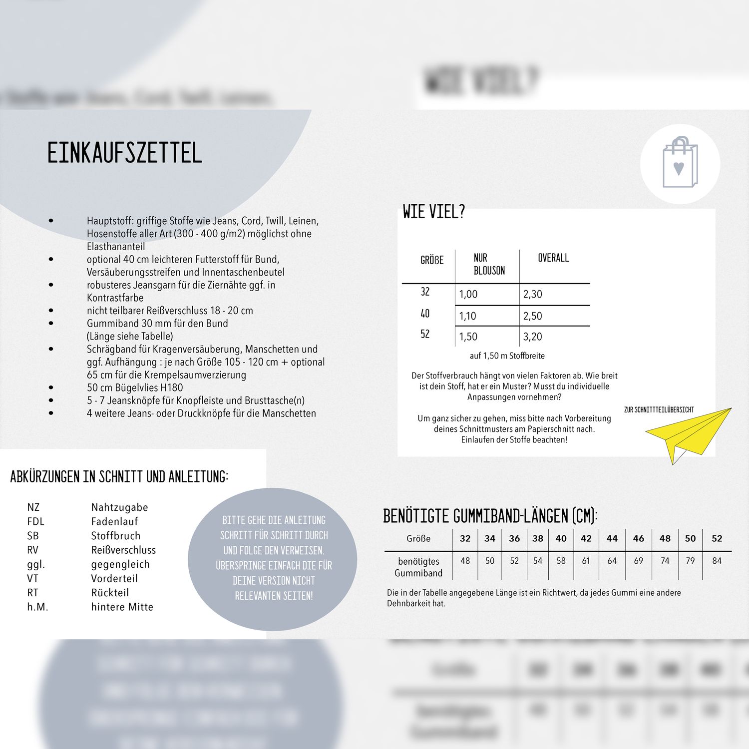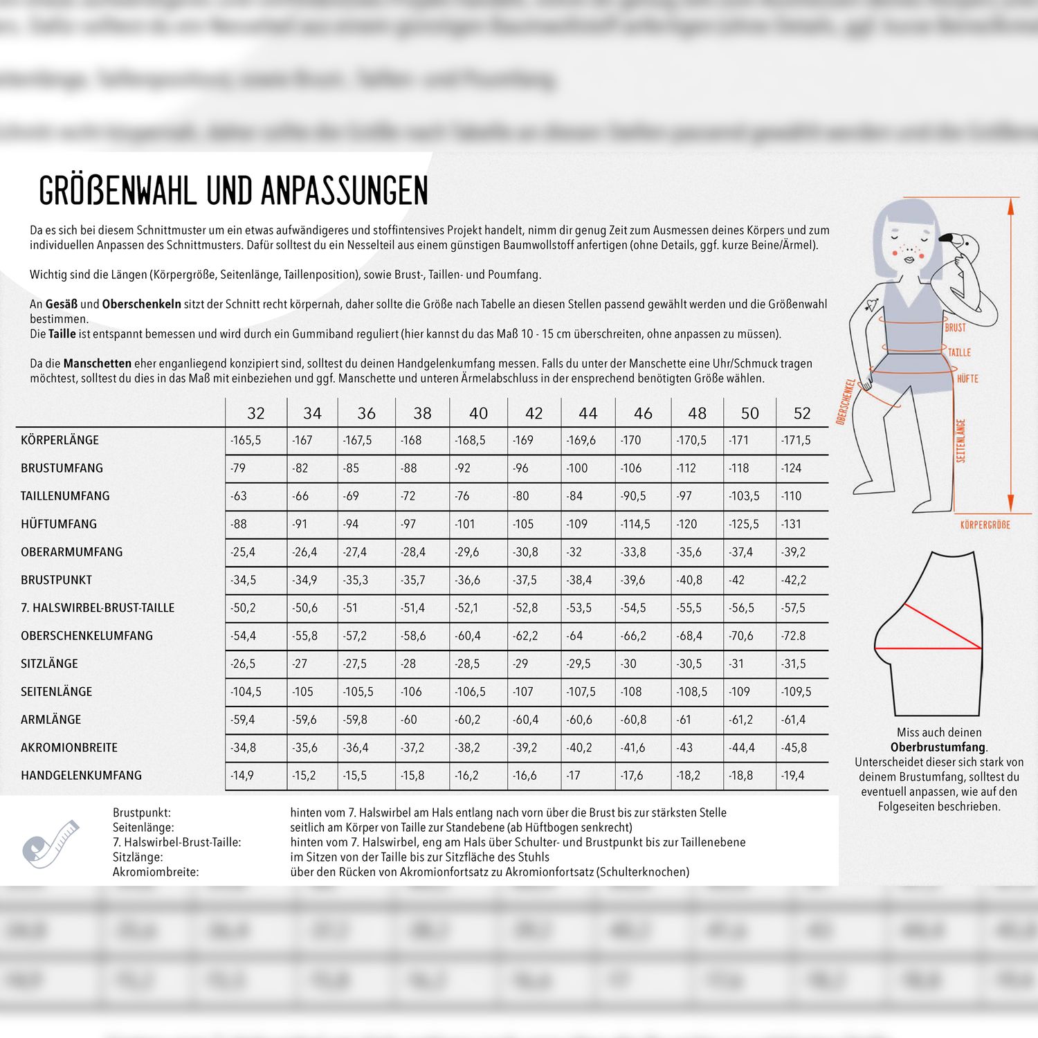 Schnittmuster in A4- und A0-Format zum Ausdrucken mit ausblendbaren Ebenen.