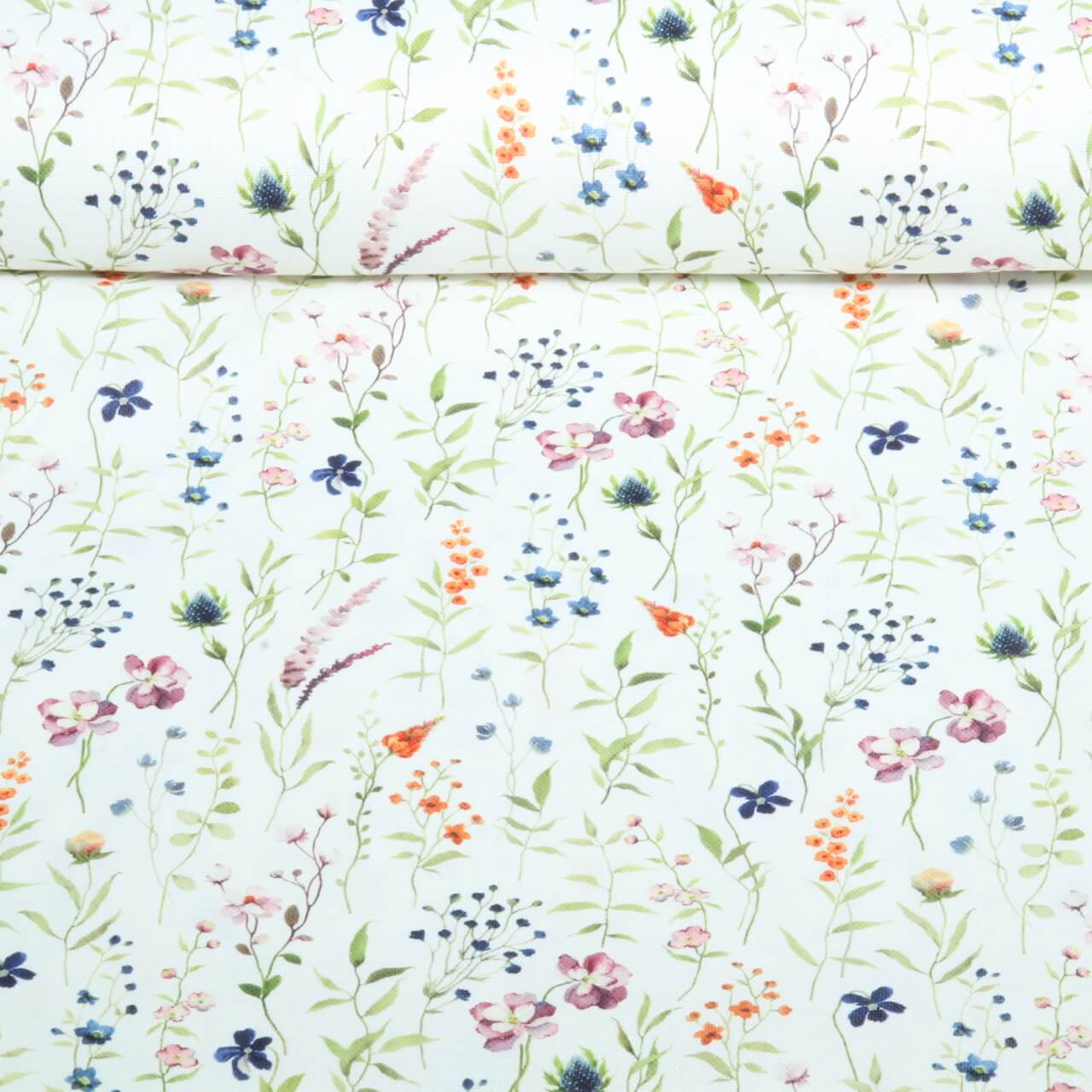 Baumwoll-Canvas - Digitaldruck Blumen und Gräser Weiß