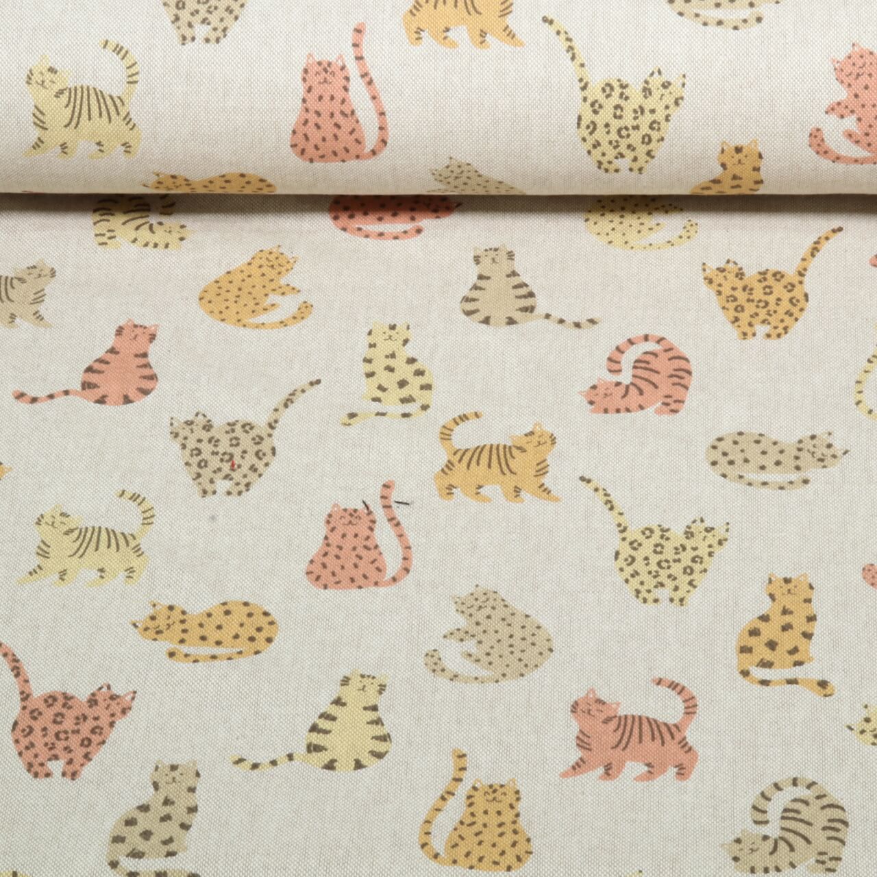 Canvas - Bunte Katzen Leinenoptik Beige