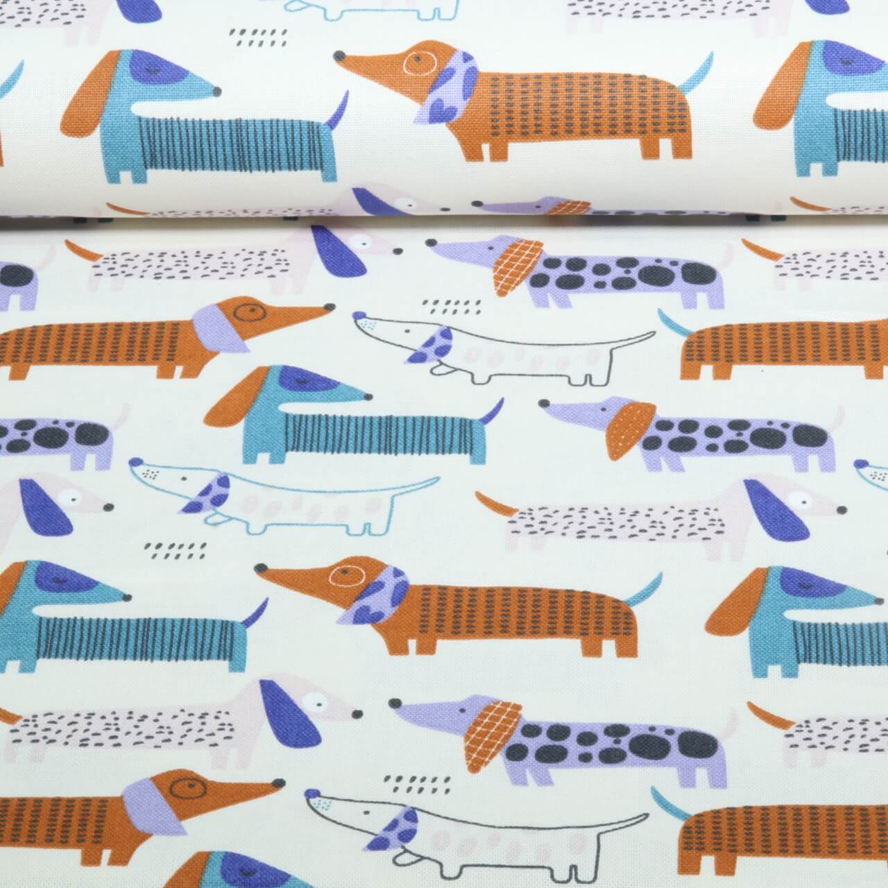 Baumwoll-Canvas - Digitaldruck Dackel Ecru
