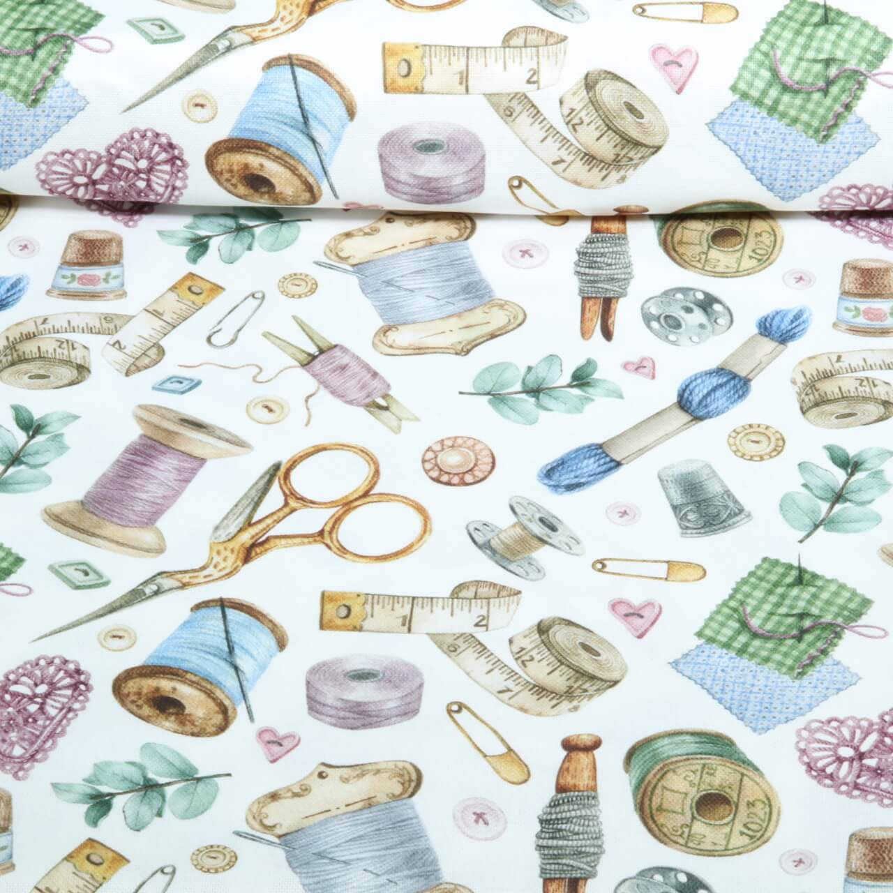 Baumwoll-Canvas - Digitaldruck Nähutensilien Weiß