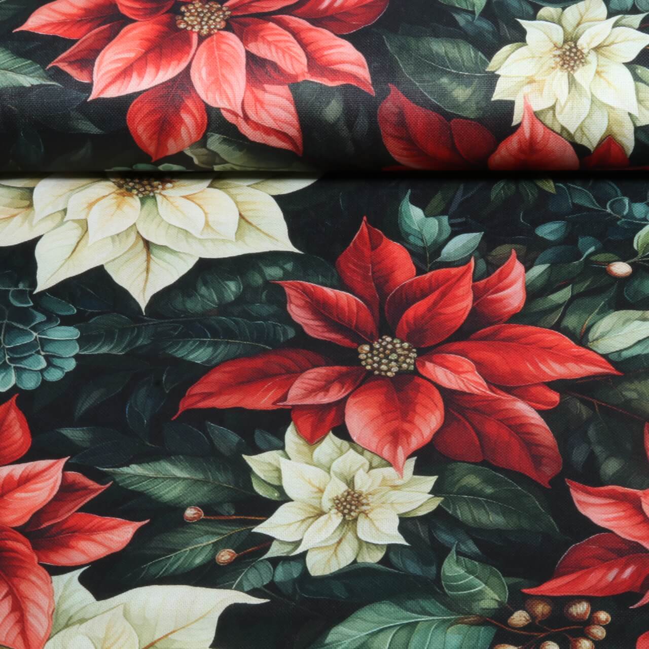 Baumwoll-Canvas - Digitaldruck XMAS Weihnachtsblumen Schwarz