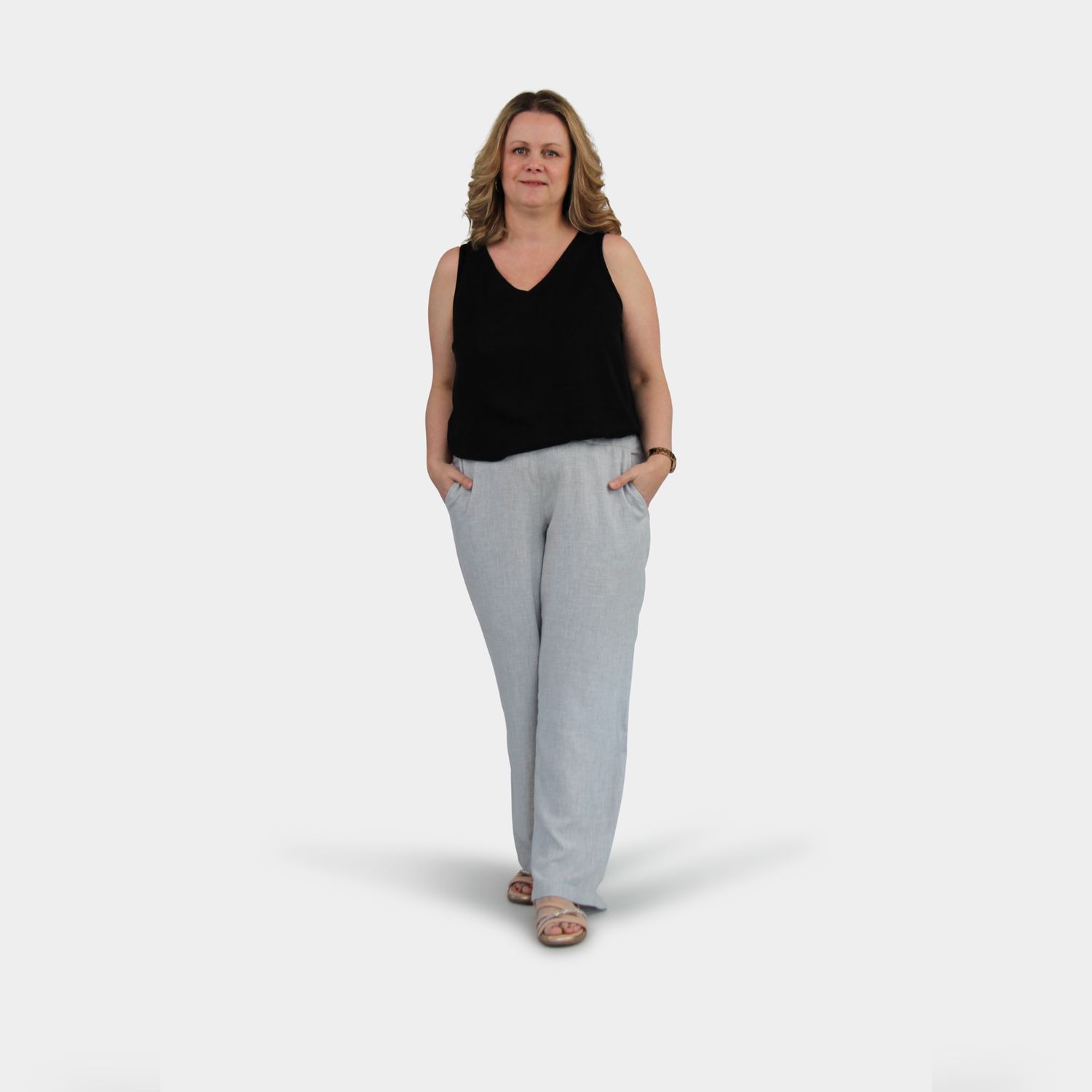 Aus Jersey wird sie zur bequemen Loungehose, aus Leinen zur stilvollen Sommerhose – ein Schnitt, der sich deinem Stil anpasst.
