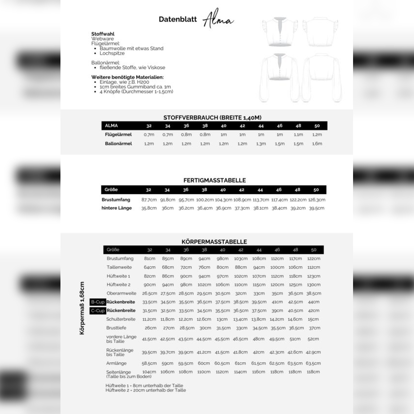 detaillierte step-by-step Bildanleitung inkl. Stoffverbrauch sowie Hinweise zum Zuschnitt, gängigsten Anpassungen und der Vorbereitung