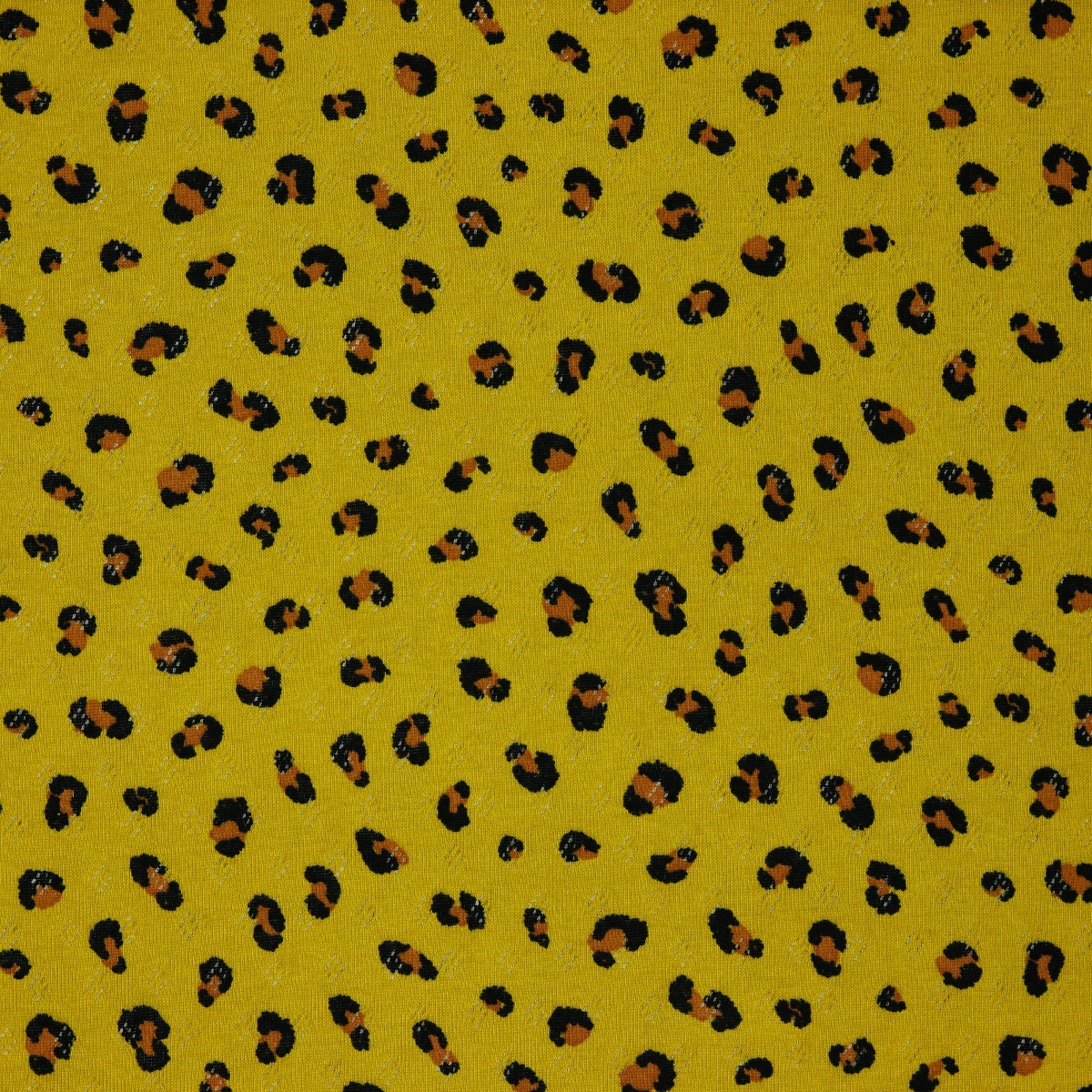 Feinstrickjersey Ajour Pointoille Leomuster auf Senfgelb