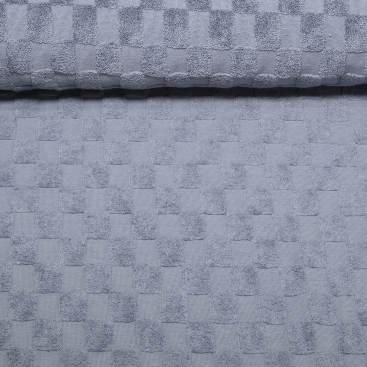 Frottee Jersey - Ton-in-Ton Karo Jeansblau