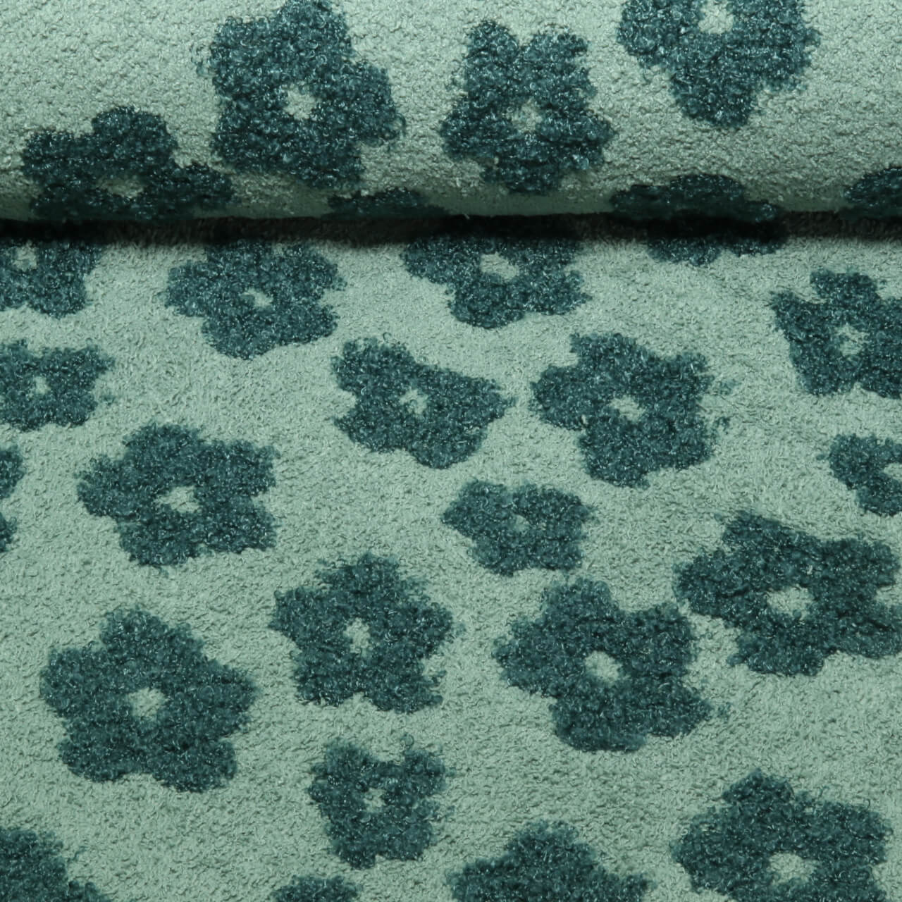 Frottee Strickjersey - Boucle Blumen Salbeigrün