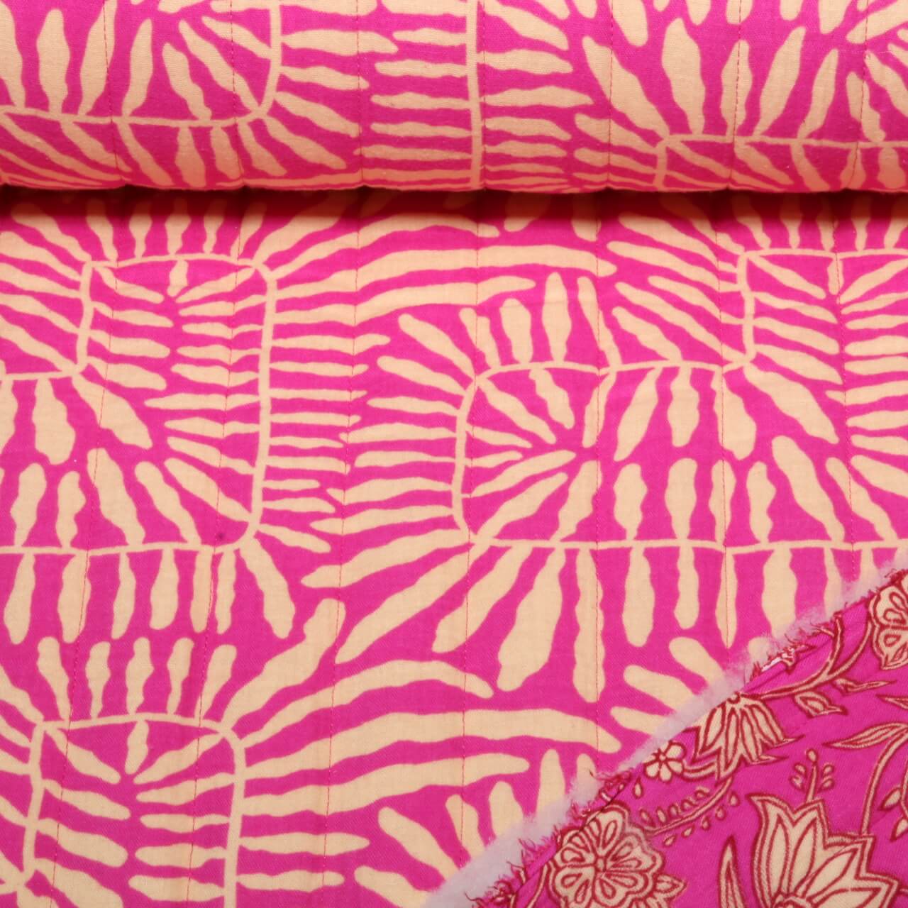 Gesteppter Musselin - Doubleface Blätter Fuchsia Wattiert