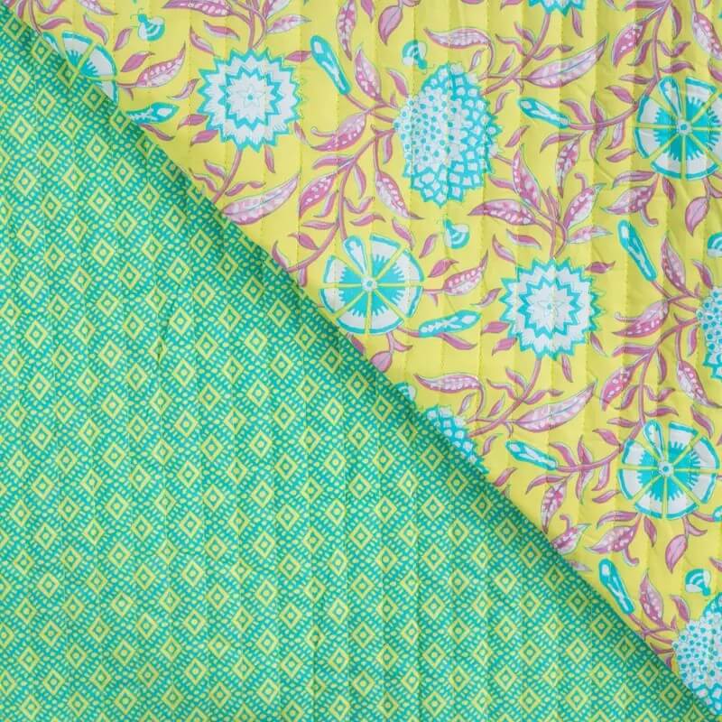 Gesteppter Jackenstoff - Doubleface Blumen & Ornamente Gelb Wattiert