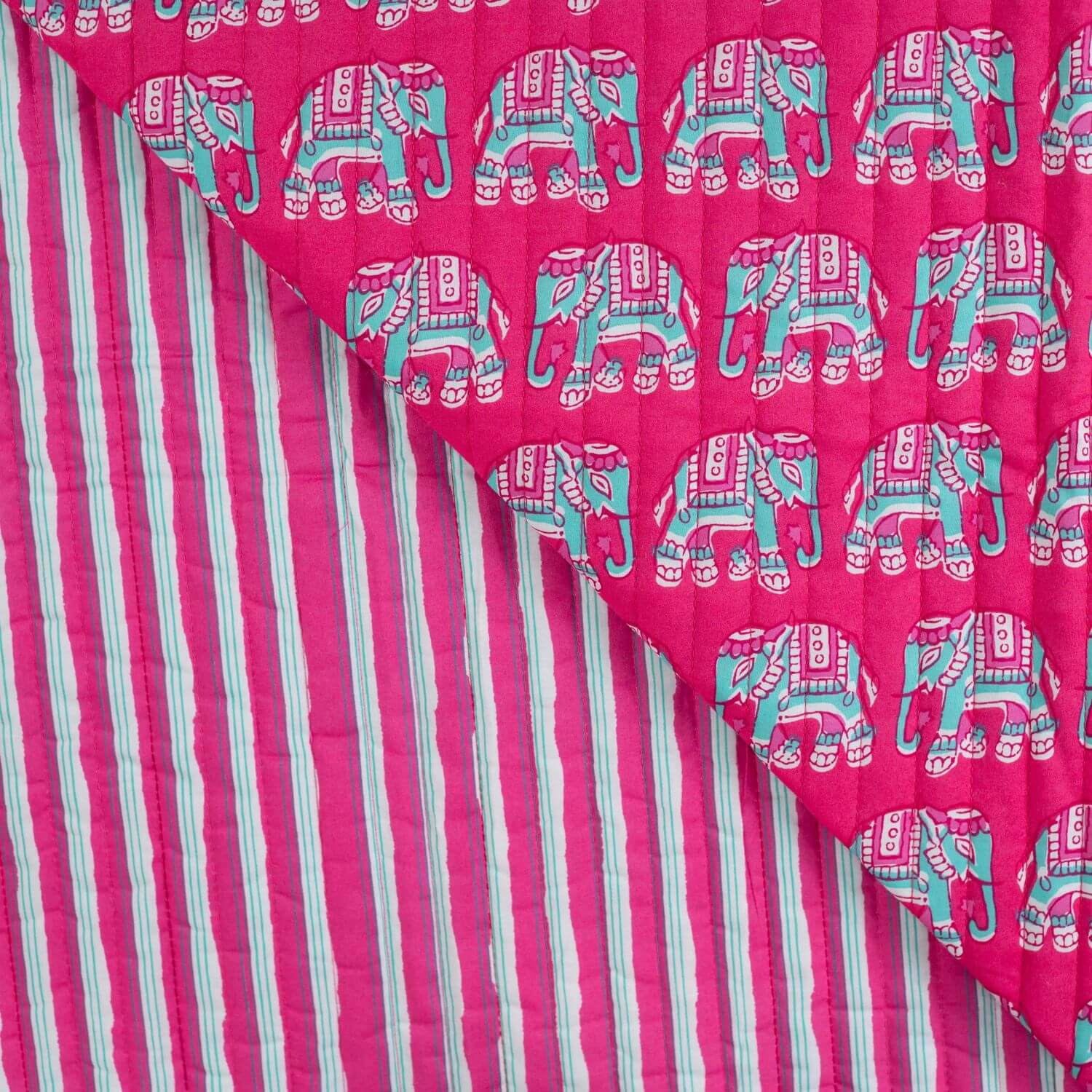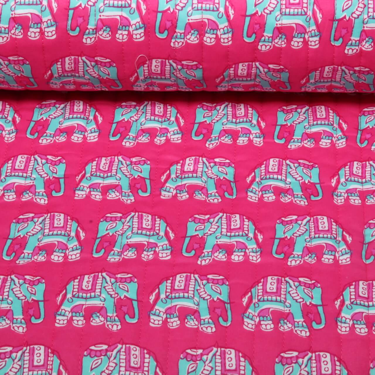 Gesteppter Jackenstoff - Doubleface Elefanten & Streifen Pink Wattiert