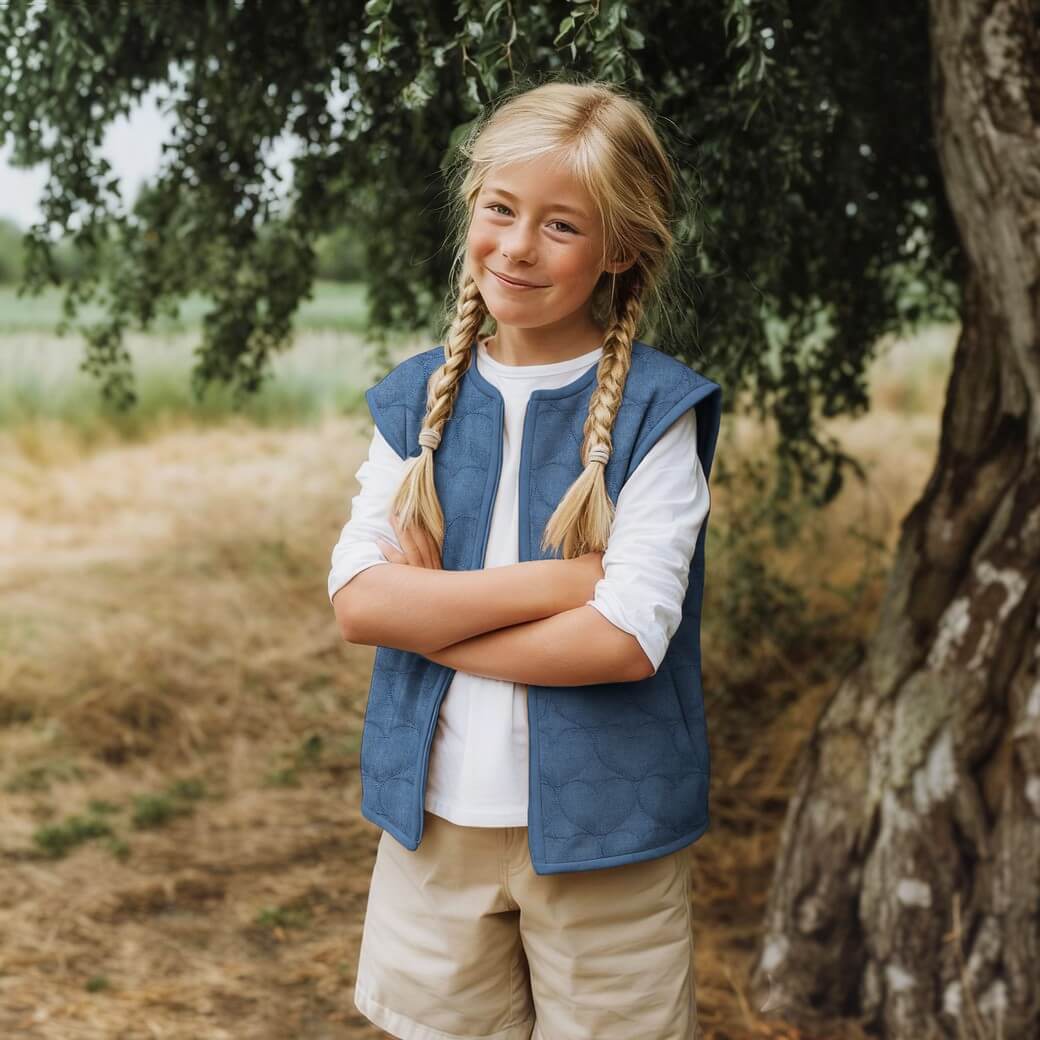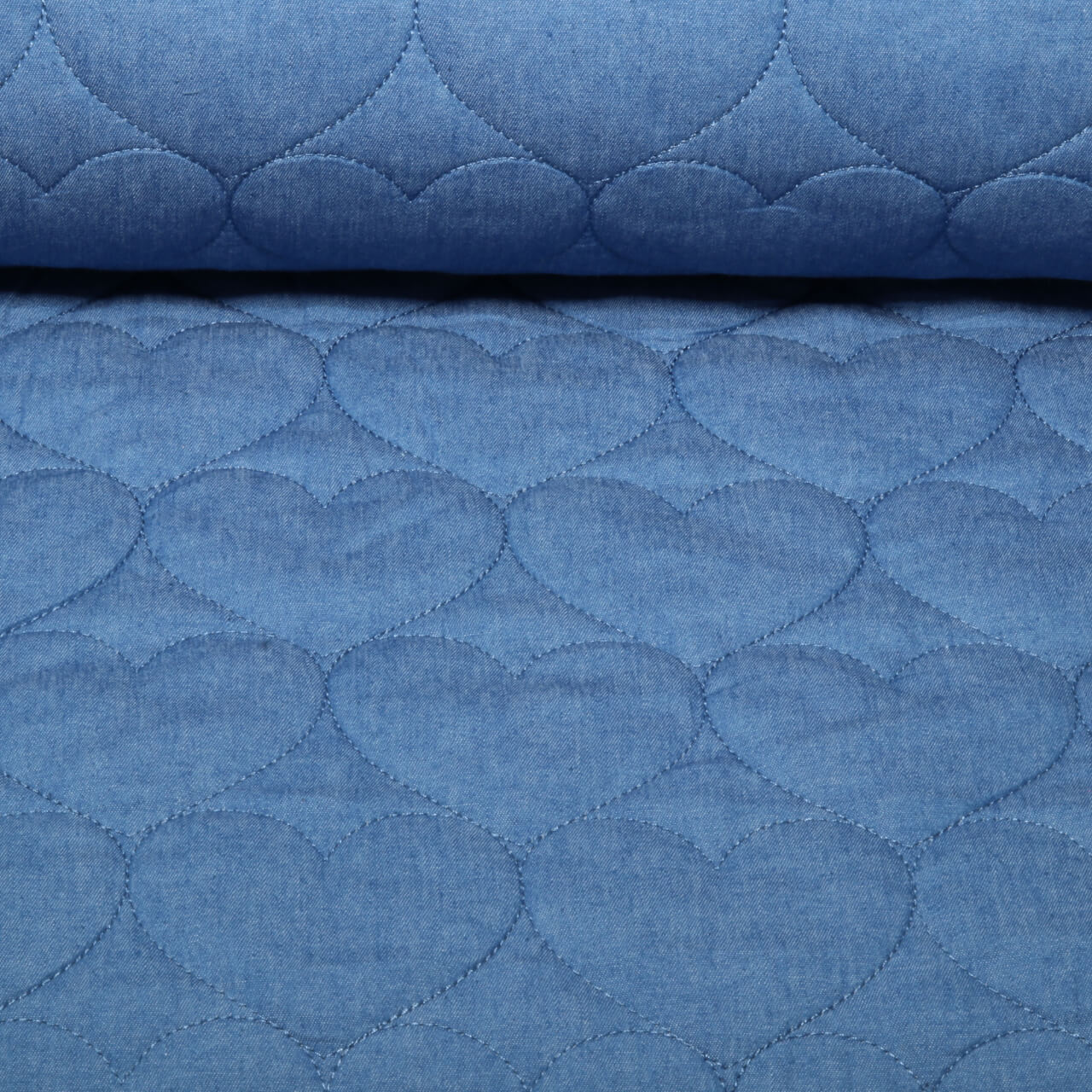 Gesteppter Jackenstoff - Herzen Jeansblau