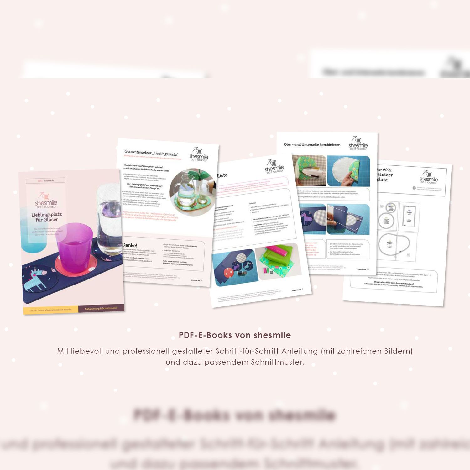 PDF-E-Books von shesmile: Diese leicht verständliche Schritt-für-Schritt-Anleitung mit vielen Fotos ist auch für Nähanfänger geeignet, denn die sehr ausführliche Fotoanleitung begleitet dich bei jedem Schritt.