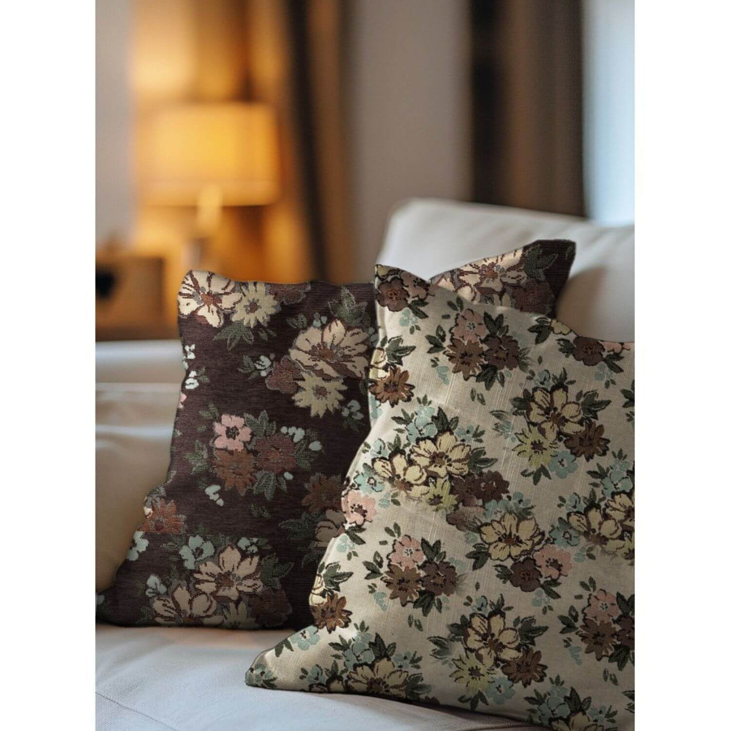 Gobelin - Chenille Blüten Gold Braun