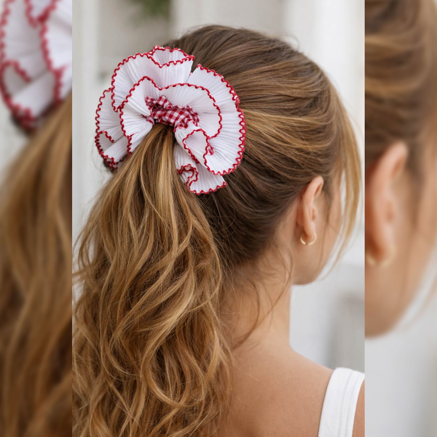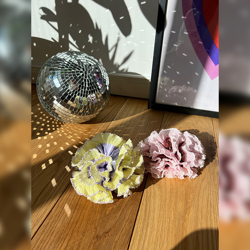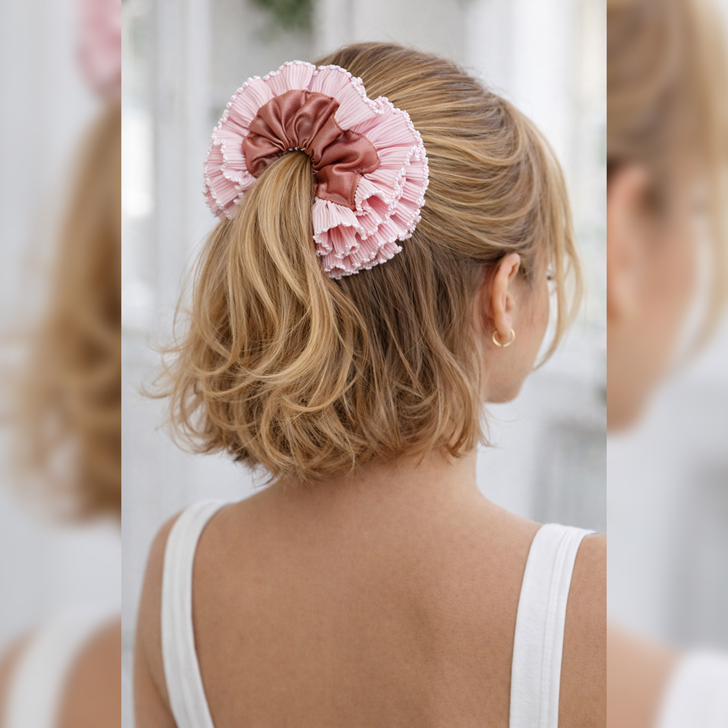 Kreiere ein echtes Statement-Accessoire mit diesem Ruffle Scrunchie Schnittmuster – einem modernen, voluminösen Scrunchie Schnittmuster mit geraffter Mitte und breiter, angesetzter Plissee-Rüsche mit versäubertem Außenrand (optional).