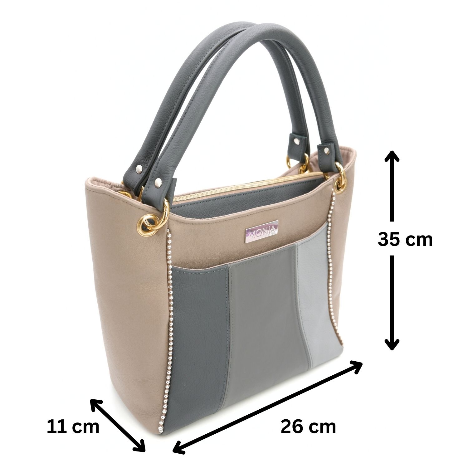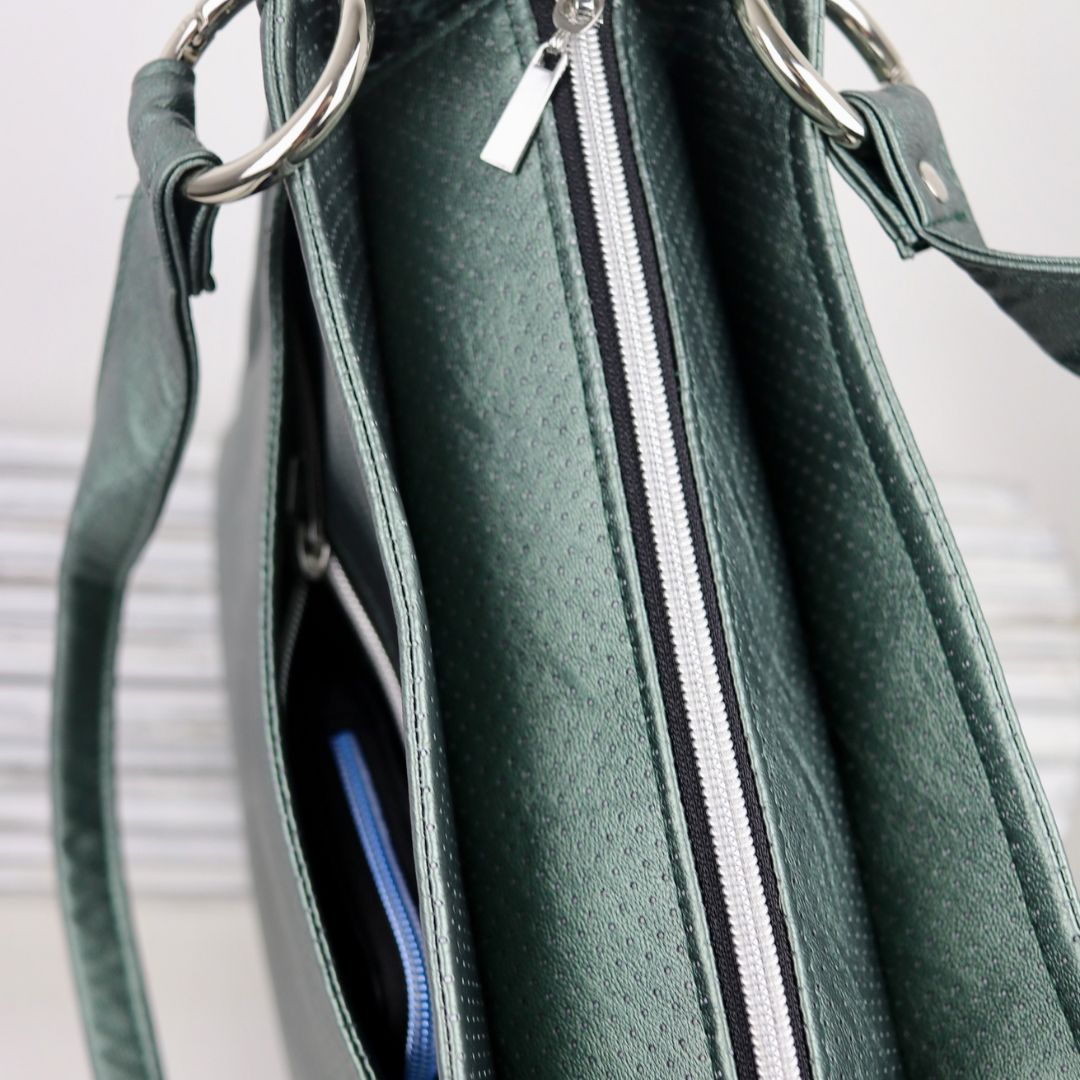 Adelie ist eine elegante Tasche mit geschwungener Schnittführung, die in Größe M ausreichend Platz für den Alltag bietet. Seitliche Paspeln und die Treiteilung am Hauptteil unterstreichen die schöne Form.