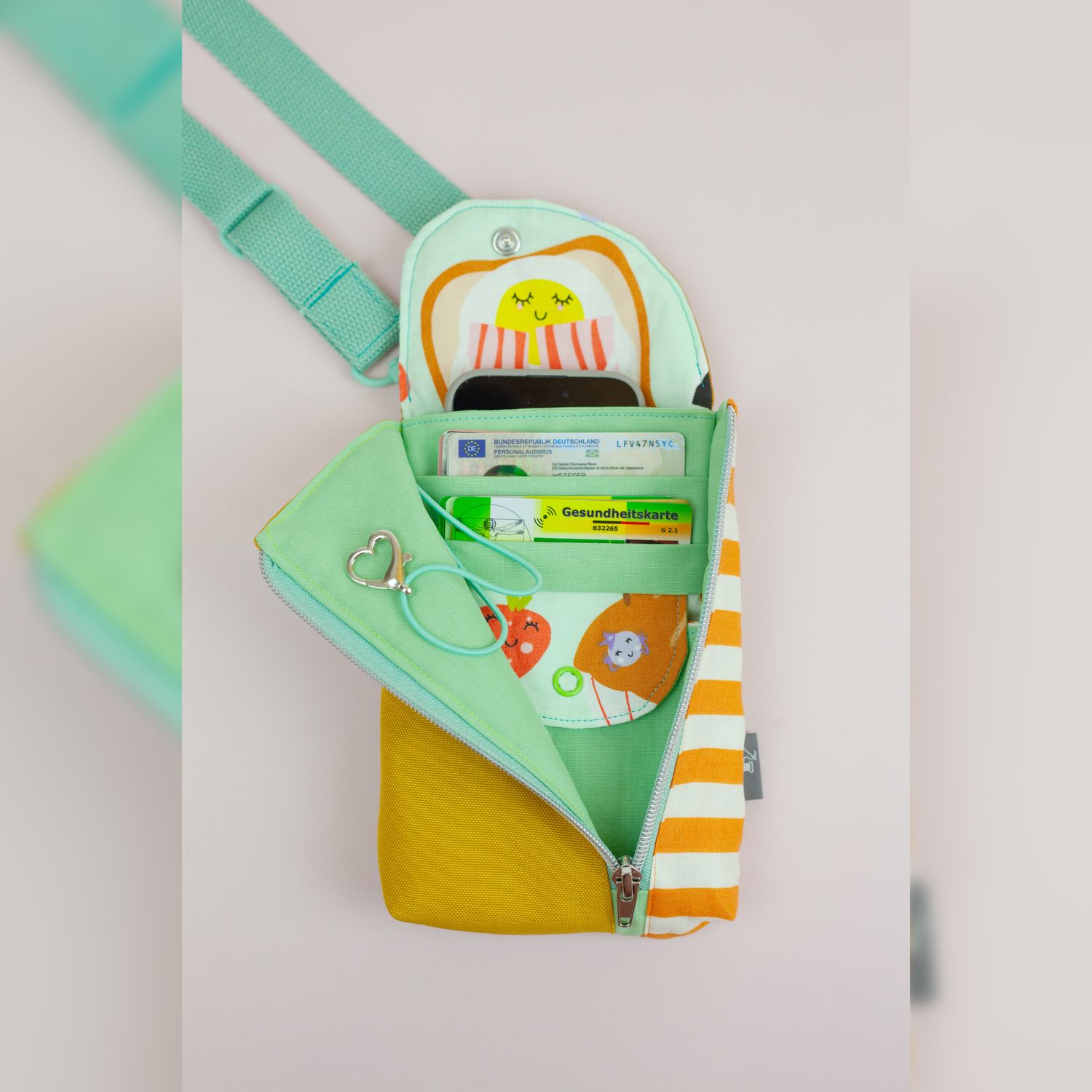 Mit der Handytasche Smartkram werden die Basics aus dem Portemonnaie in eine schicke Handytasche integriert und zusätzliche, praktische Funktionen hinzugefügt.
