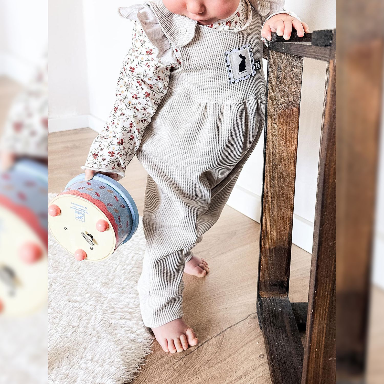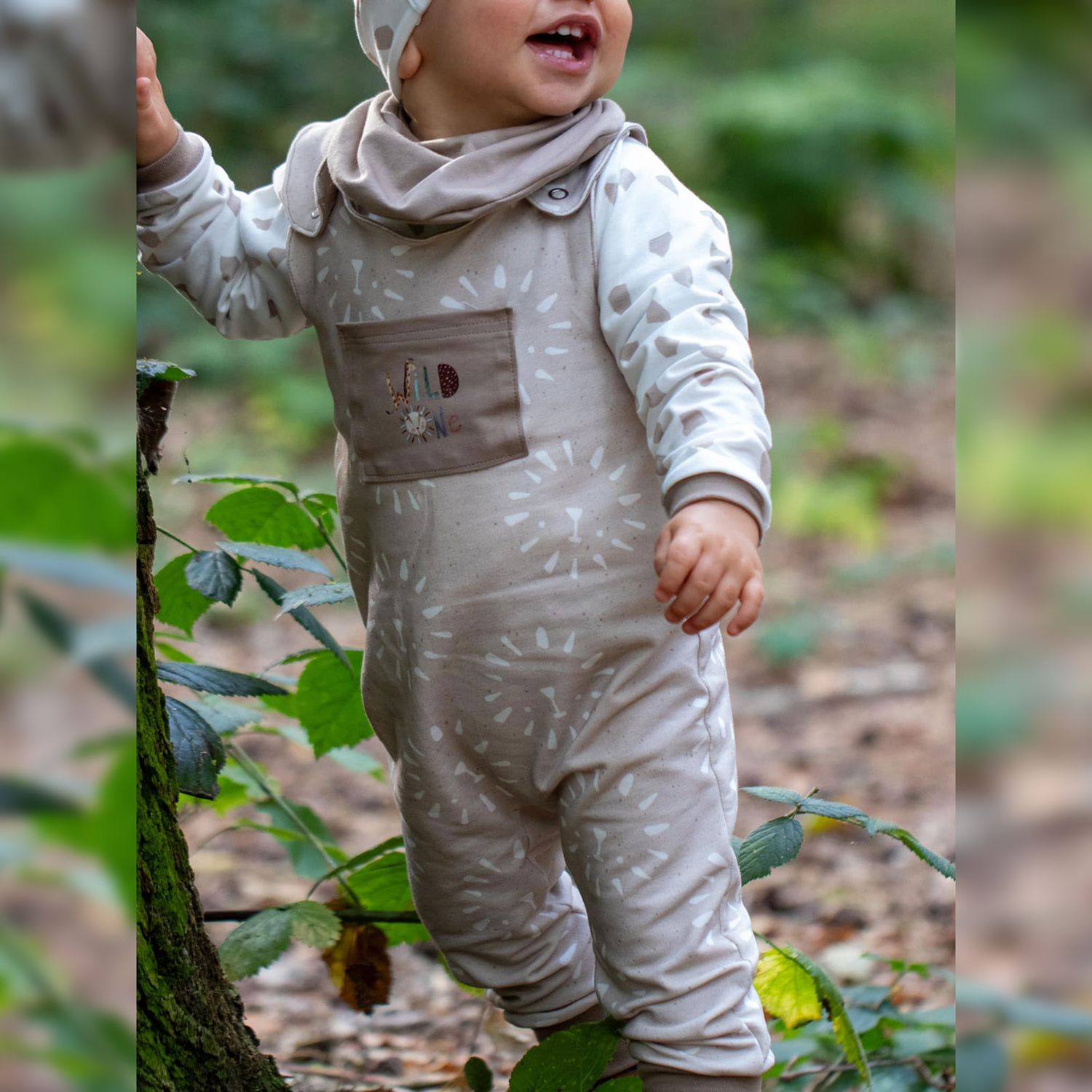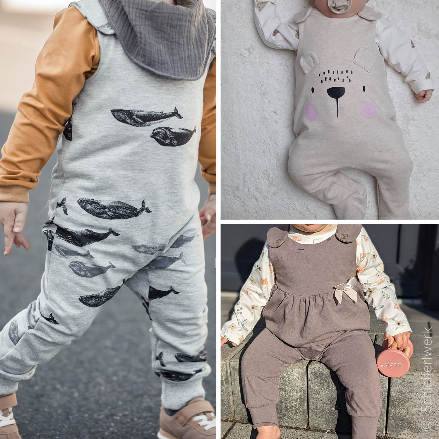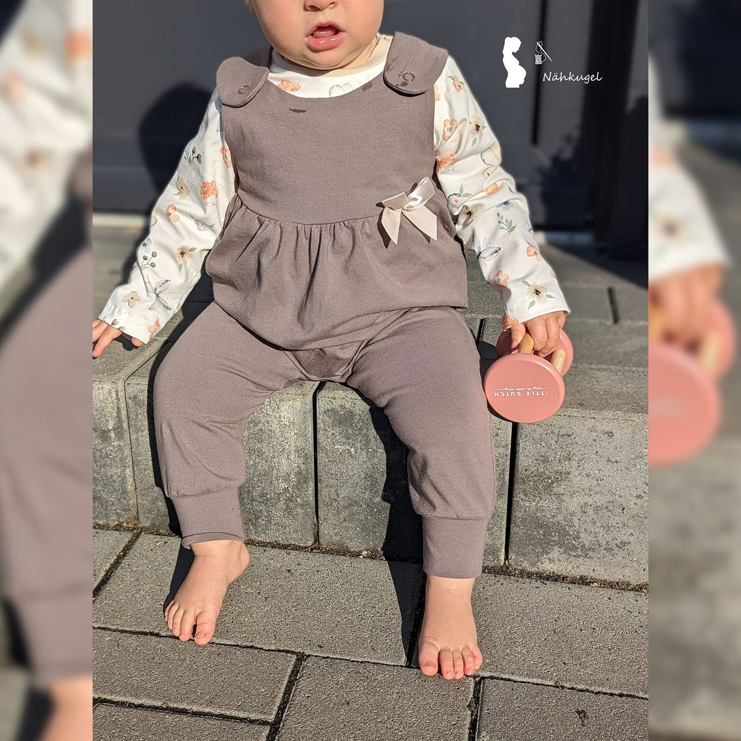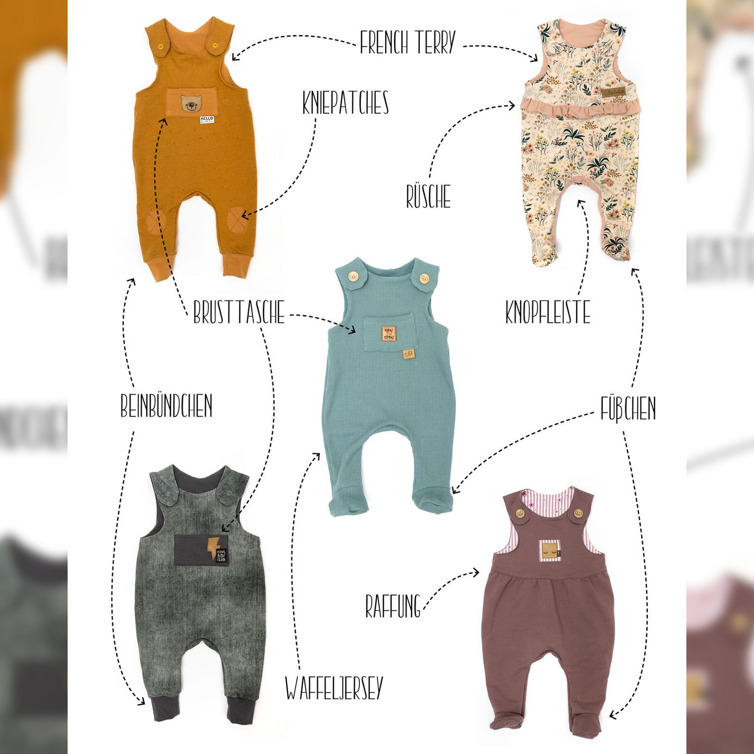Der Happy Baby Strampler ist für Jungs und Mädels gleichermaßen geeignet. Du kannst ihn mit Rüsche, Raffung, Tasche oder Kniepatches nähen. Der Beinabschluss kann für kleine Kinder mit Füßchen und für größere mit Bündchen genäht werden. Im Schritt kann optional eine Knopfleiste angebracht werden. Die Grundversion ist für NähanfängerInnen geeignet.