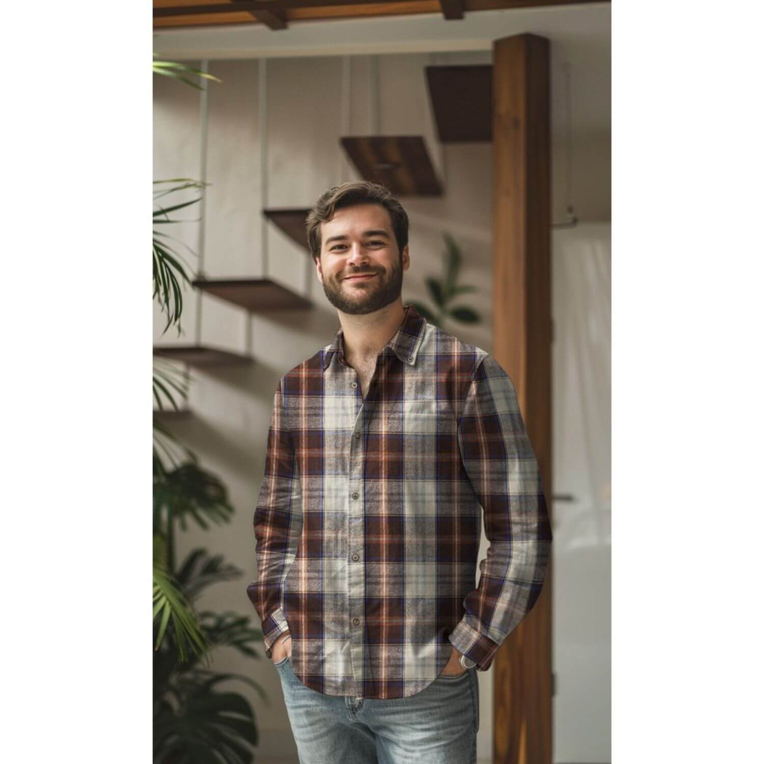 Hemdenstoff - Holzfällerkaro Beige Angeraut Garngefärbt