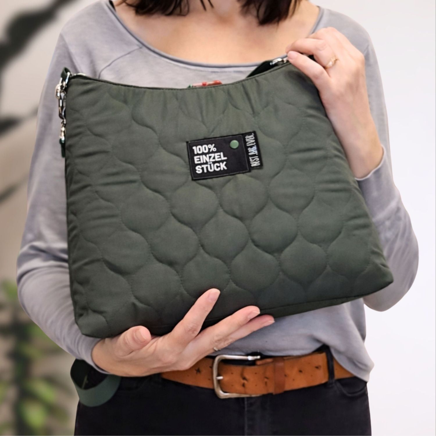 Außentasche: In die Außentasche der Nahela kannst du optional ein Reißverschlussfach einnähen. Alles Wichtige wie z.B. das Handy oder der Autoschlüssel sind sicher verstaut, aber trotzdem sofort griffbereit.