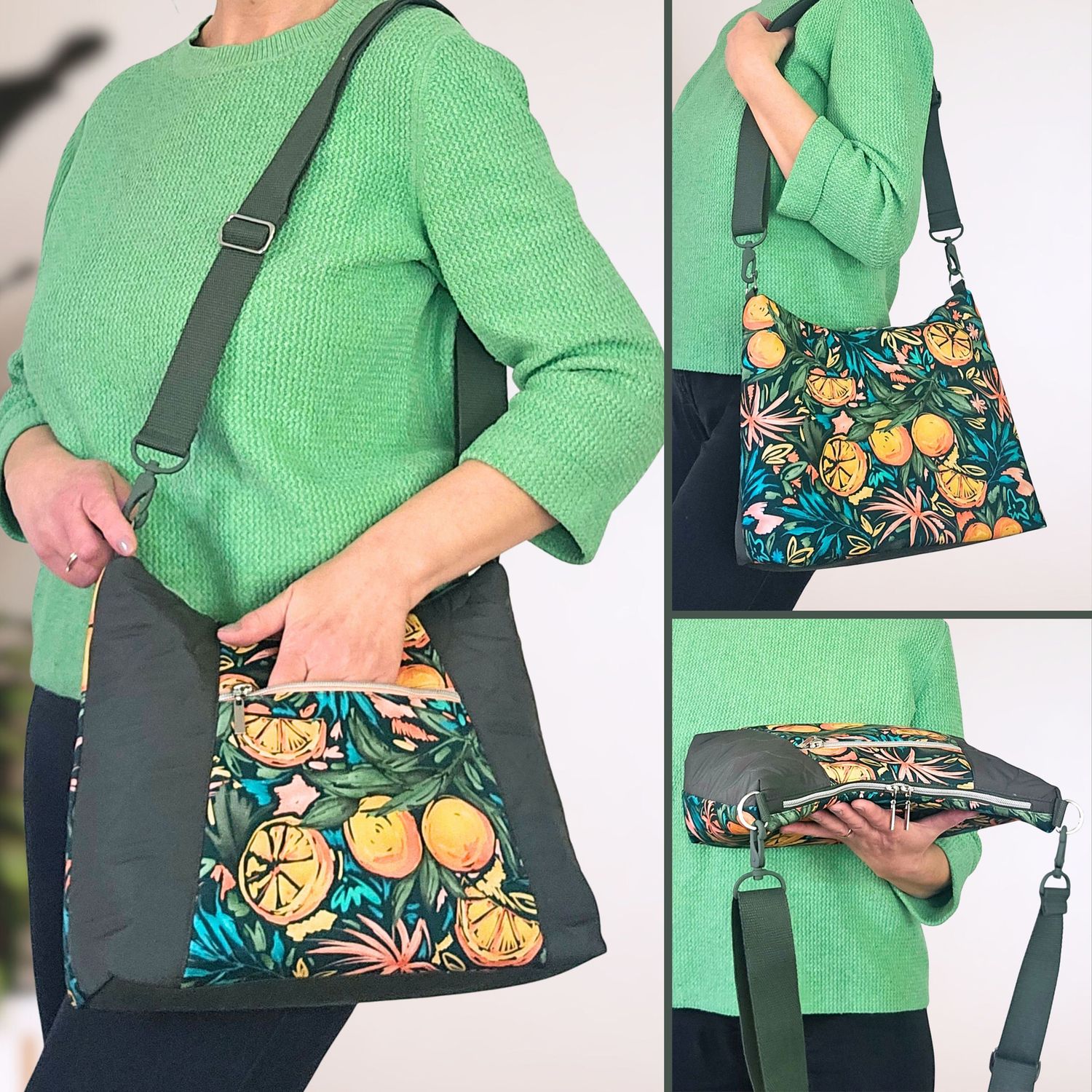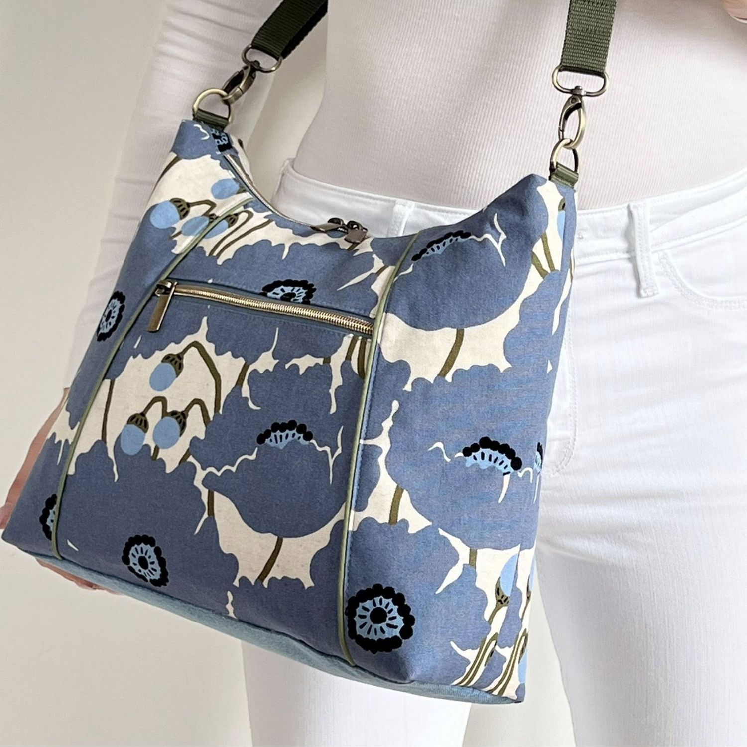 Die Hobo Bag Nahela ist eine mittelgroße, lässige Tasche, die mit ihrer Größe von 34 cm x 30 cm x 12 cm (B/H/T) viel Platz und Stauraum mitbringt. Nahela bietet durch ihr durchdachtes, klares Design viele Möglichkeiten, um Stoffe in Szene zu setzen. Du kannst sie aber auch schlicht gestalten. Anhand der sehr detaillierten Fotoanleitung und den verschiedenen Verschlussvarianten können auch Taschen-Nähanfänger die Hobo Bag Nahela nähen.