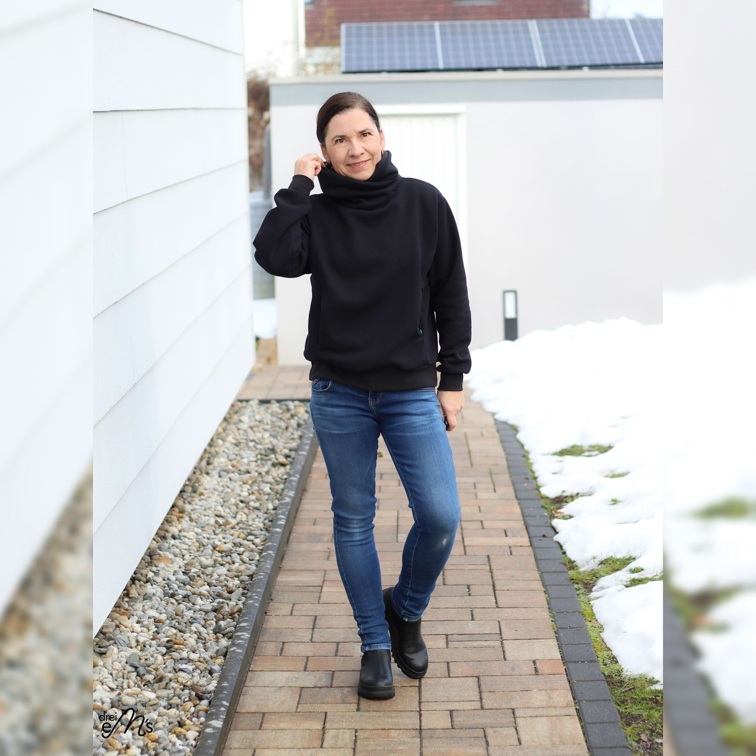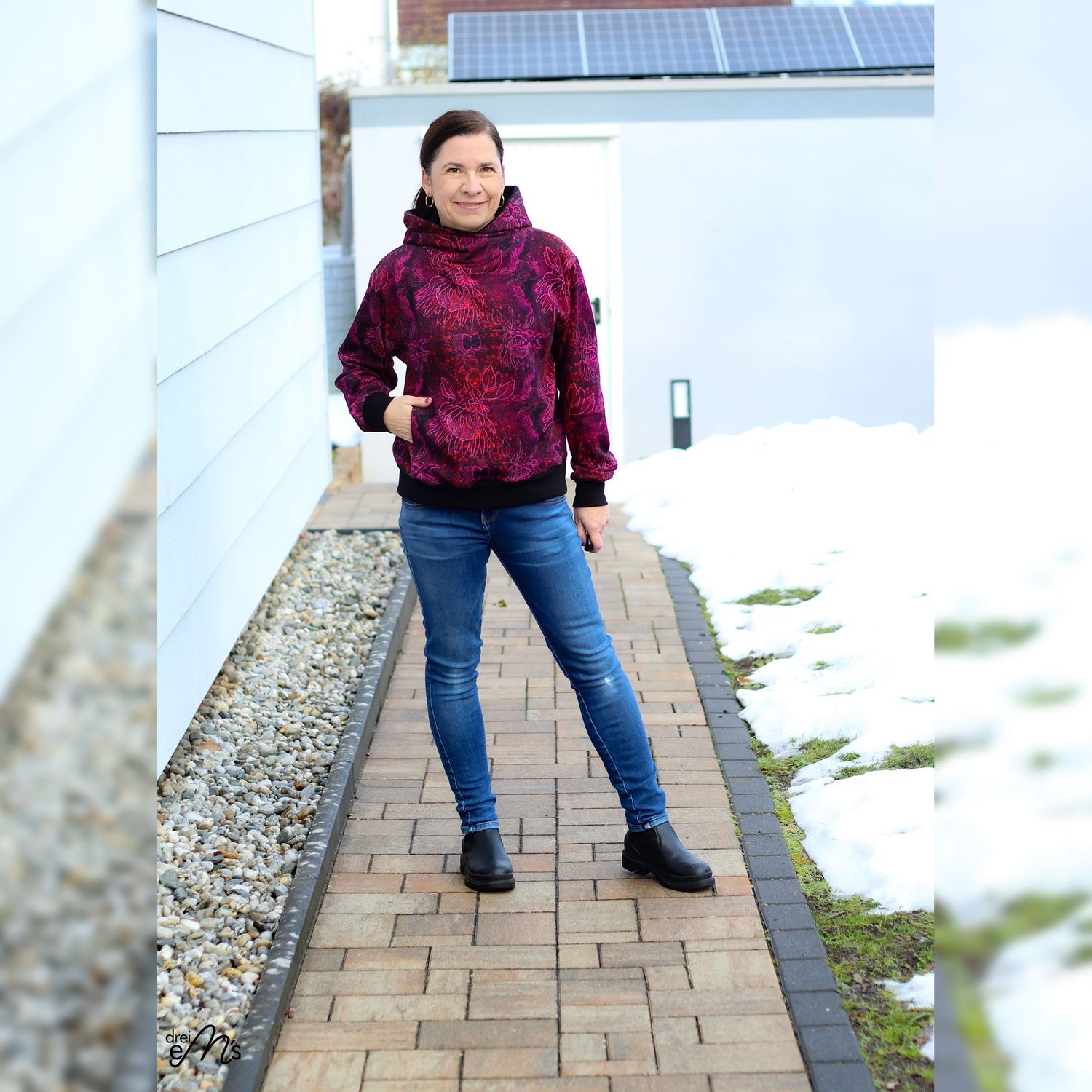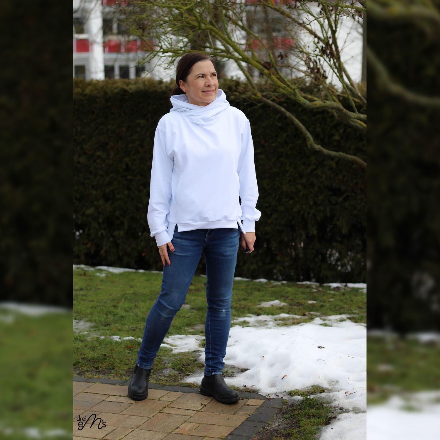 Hoodie Schnittmuster NEVIANO ist ein moderner Oversize Hoodie mit Wickelkapuze oder Wickelkragen für die Größen 34–54. Der Schnitt kombiniert hohen Tragekomfort mit raffinierten Details und einer figurschmeichelnden Linienführung. Eine Teilung im Vorderteil mit integrierten Nahttaschen sorgt für Funktion und Stil. Wähle zwischen verschiedenen Saumbündchen-Varianten sowie zwei Längen für unterschiedliche Körpergrößen. Ganzjahrestauglich und vielseitig. Perfekt für Alltag, Freizeit und Looks pur!