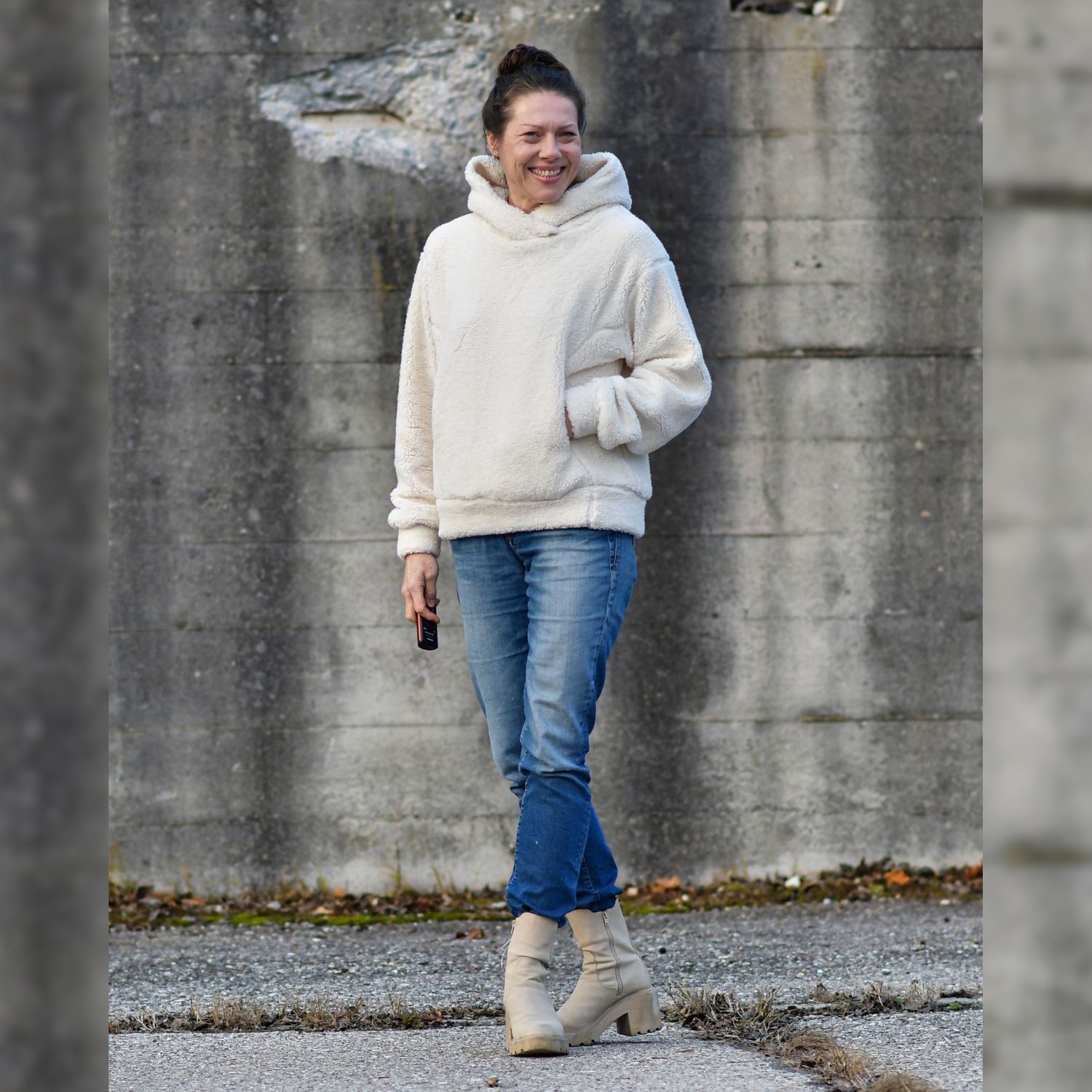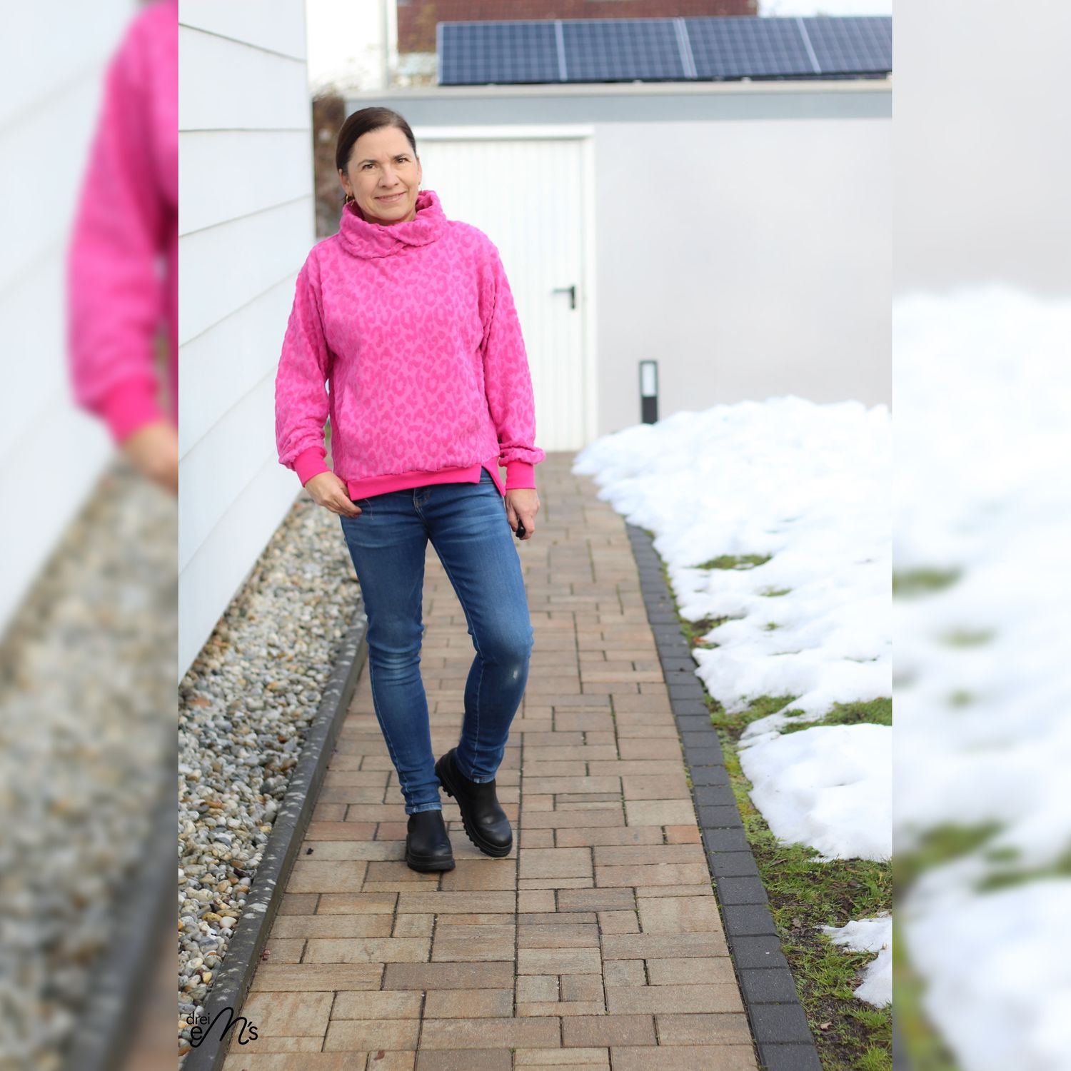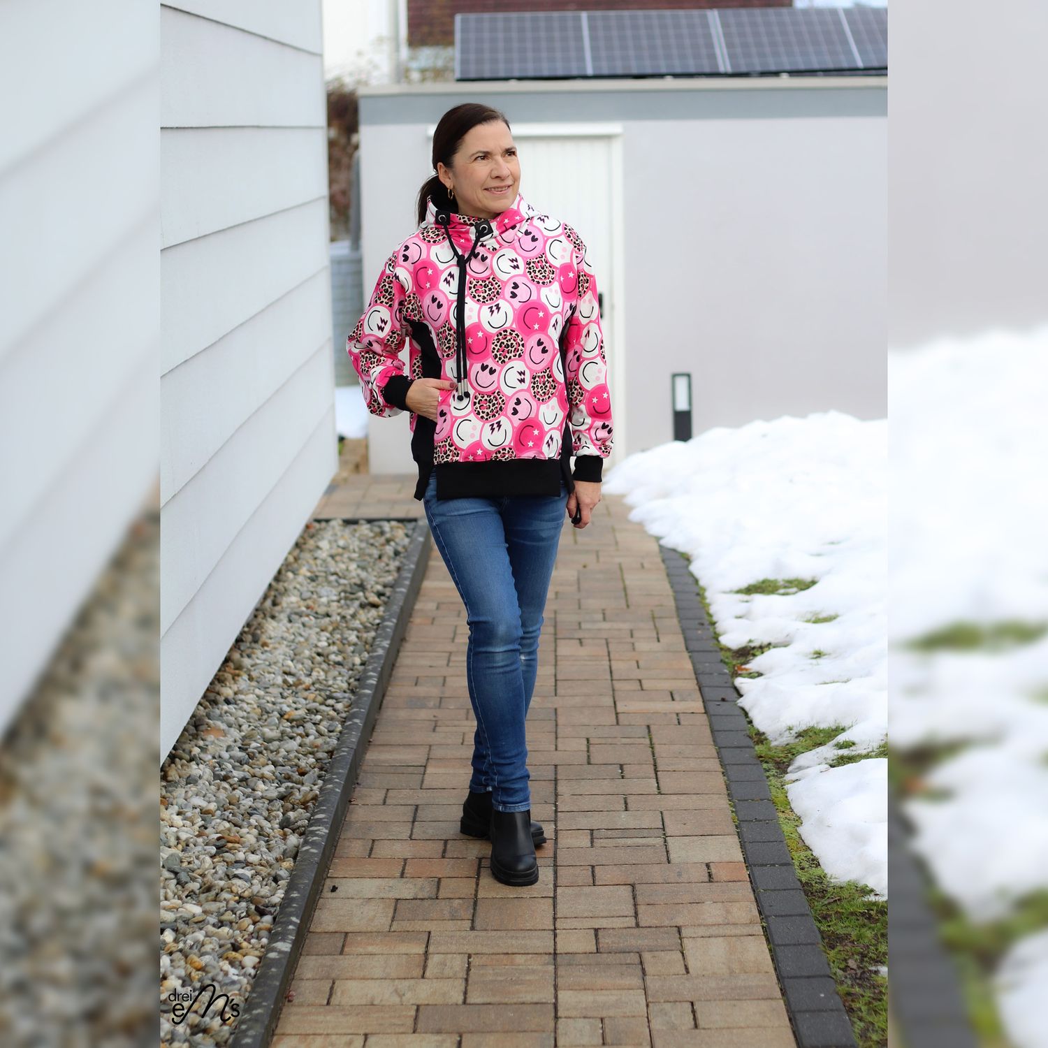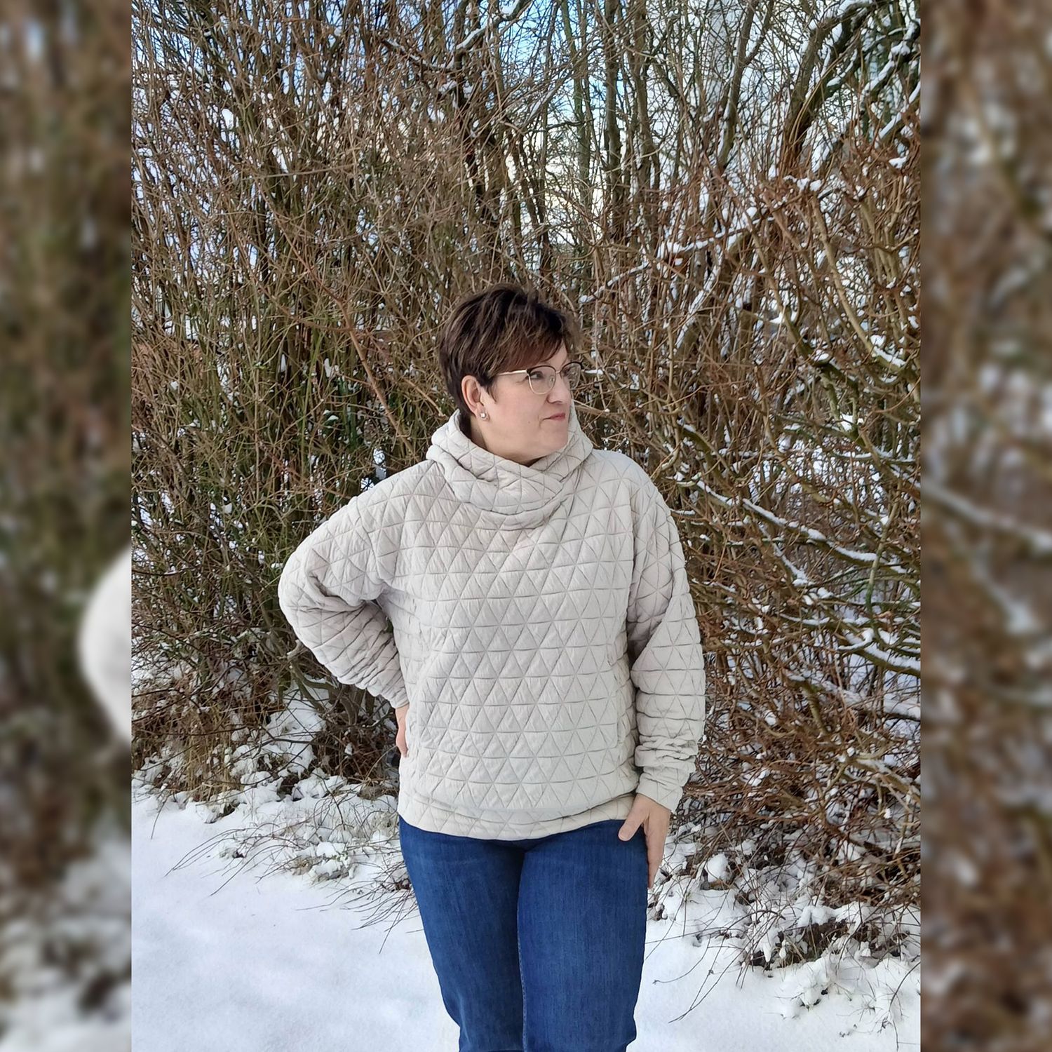 Hoodie Schnittmuster NEVIANO ist ein moderner Oversize Hoodie mit Wickelkapuze oder Wickelkragen für die Größen 34–54. Der Schnitt kombiniert hohen Tragekomfort mit raffinierten Details und einer figurschmeichelnden Linienführung. Eine Teilung im Vorderteil mit integrierten Nahttaschen sorgt für Funktion und Stil. Wähle zwischen verschiedenen Saumbündchen-Varianten sowie zwei Längen für unterschiedliche Körpergrößen. Ganzjahrestauglich und vielseitig. Perfekt für Alltag, Freizeit und Looks pur!