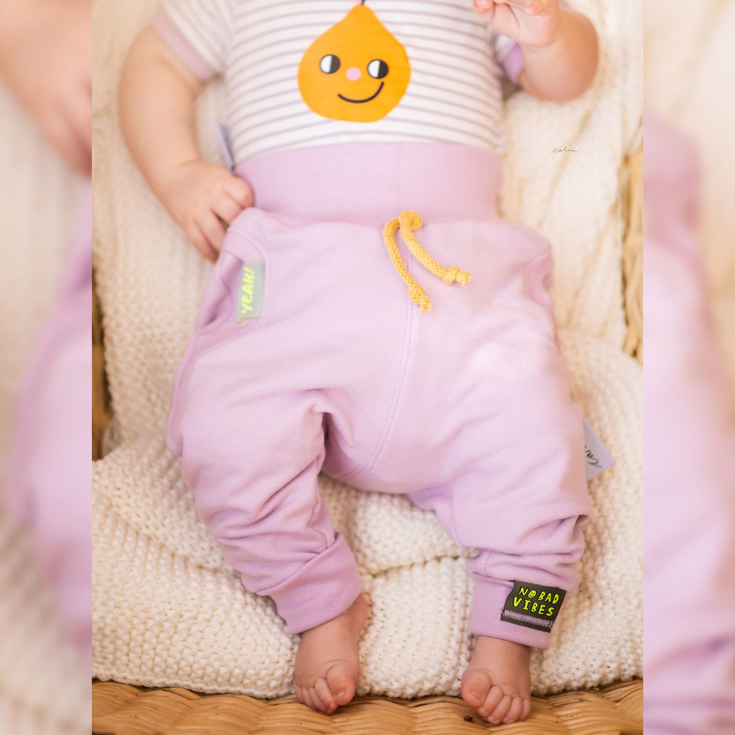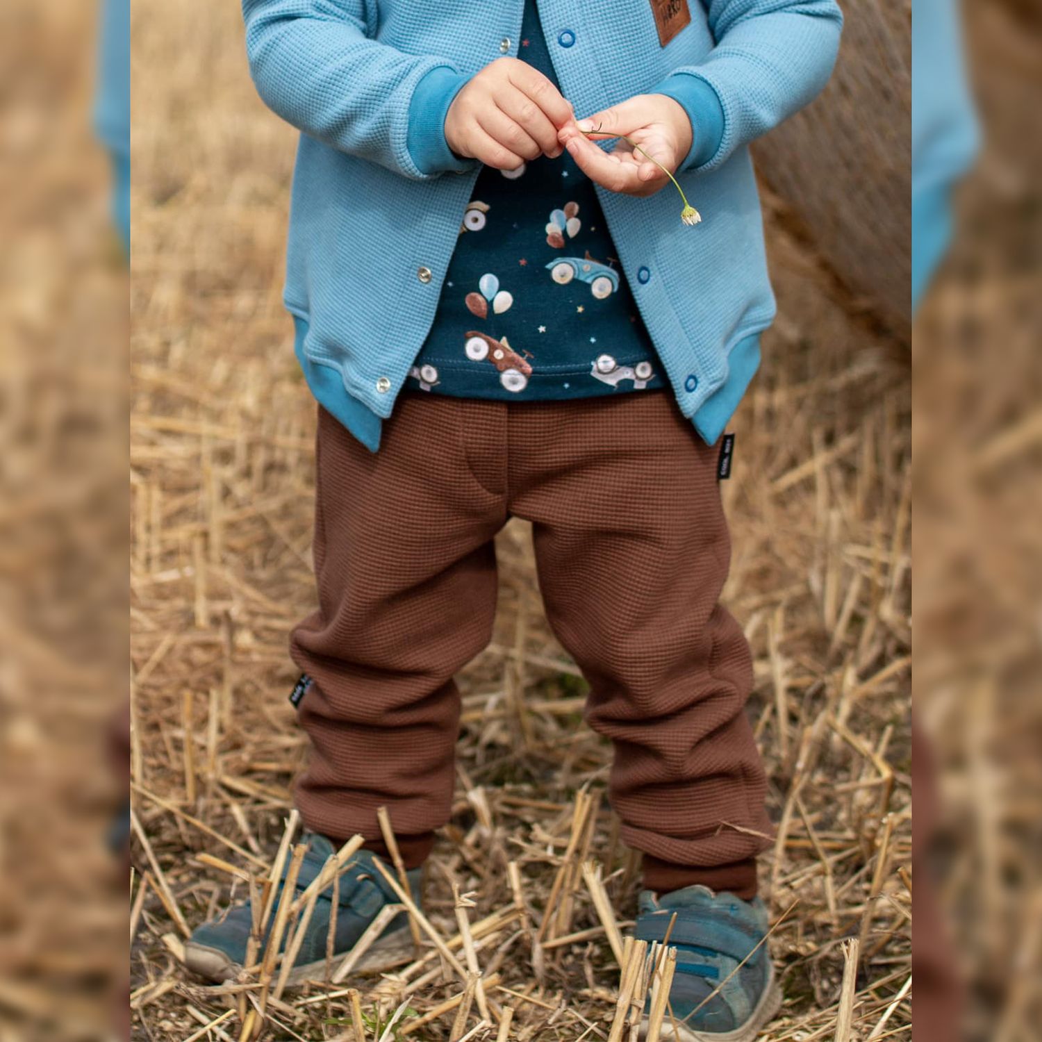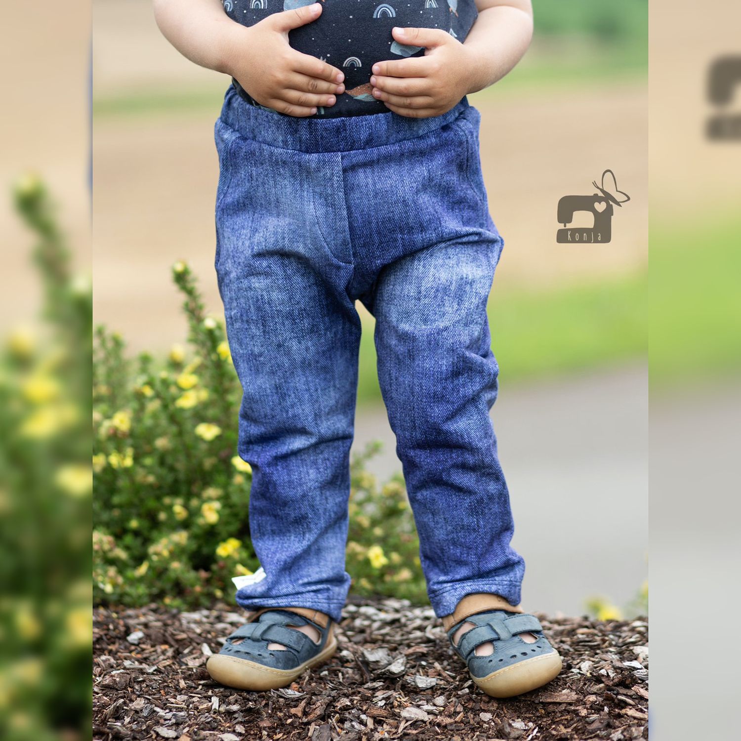 Die Happy Baby Pants ist für verschiedenste elastische Stoffarten geeignet. Am besten eignet sich French Terry. Du kannst aber z.B. auch Jersey oder Waffeljersey verwenden. Wichtig ist, dass der Stoff dehnbar ist. Für die Bündchen solltest du Bündchenware verwenden. Der Verbrauch ist mit einer Stoffbreite von 150 cm und einer Bündchenbreite von 70 cm berechnet.