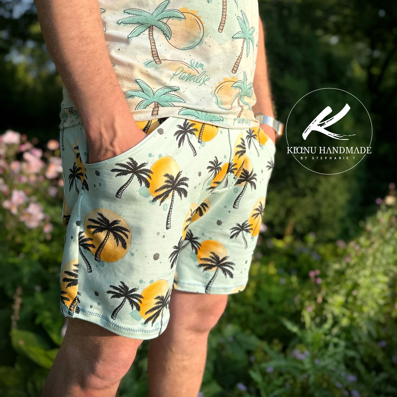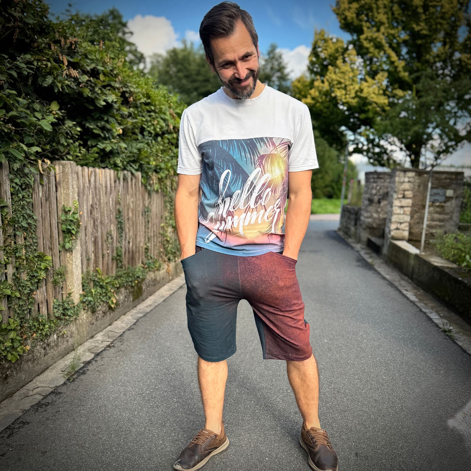 lovely men baggy pants ist eine lässige Männerhose, die ihr je nach Stoffart und Variante von sportlich bis schick nähen könnt. Man kann sie in drei Längen und mit 4 verschiedenen Taschenvarianten nähen.
