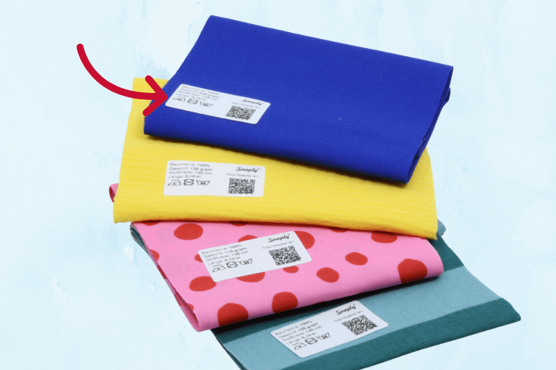 Über den QR-Code auf dem Etikett gelangst Du direkt zum passenden Stoff im Shop – superpraktisch, wenn Du später Meterware bestellen möchtest! 🛒