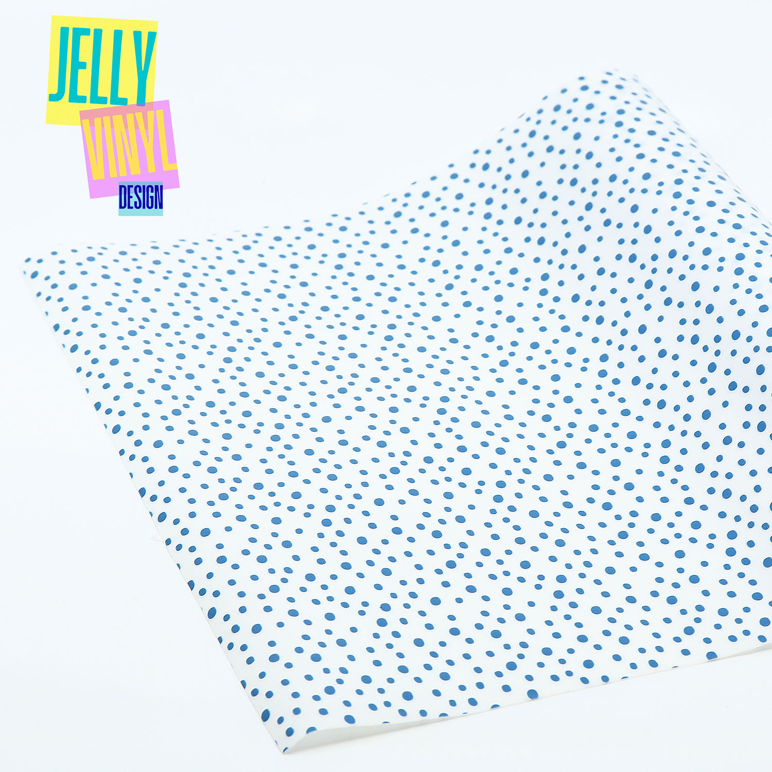Das Jelly Vinyl Design „Dots blau" ist ein transparentes Vinyl mit zeitlosem Pünktchen Design. Es setzt fröhliche Akzente und macht jedes Nähprojekt zu etwas Besonderem.