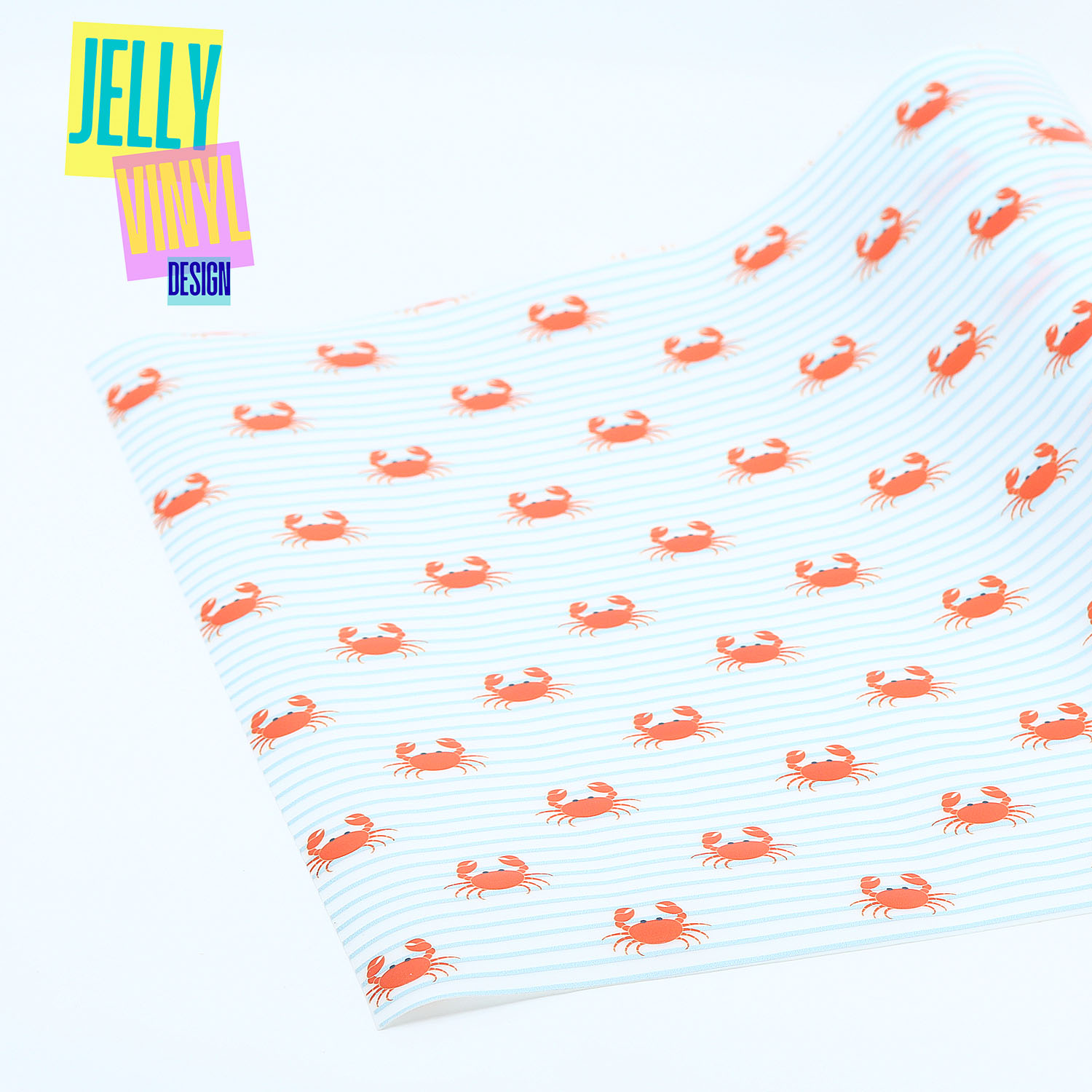Das Jelly Vinyl Design „Krabbe" ist ein transparentes Vinyl mit maritimen Krabben Design. Es setzt fröhliche Akzente und macht jedes Nähprojekt zu etwas Besonderem.