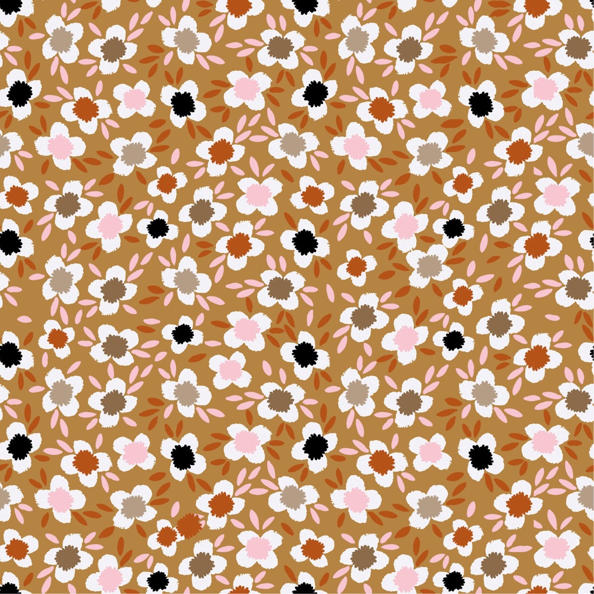 Jersey Blümchen Ella auf Dunklem Senfgelb