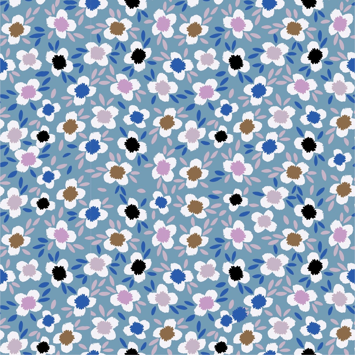 Jersey Blümchen Ella auf Hellem Rauchblau