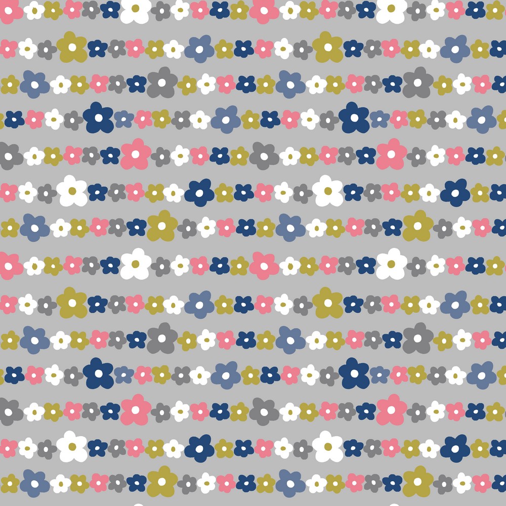 Jersey Blumenschnur auf Hellgrau BIO