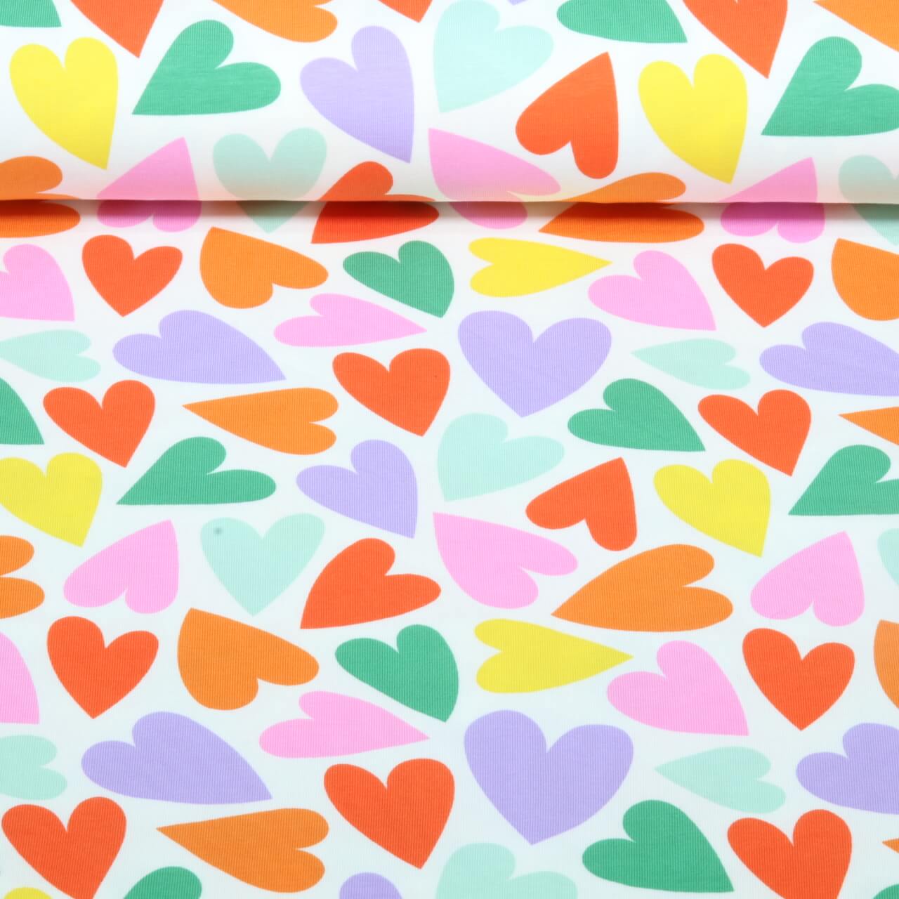 Jersey - Bunte Herzen Weiß
