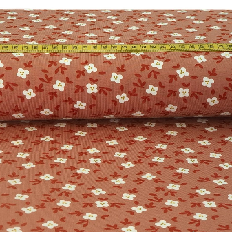 Jersey Cute Flowers Dunkles Altrosa BIO
