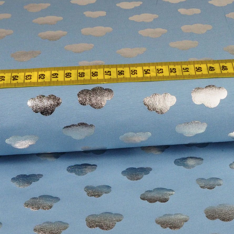 Jersey Foliendruck Wolken Silber auf Hellblau
