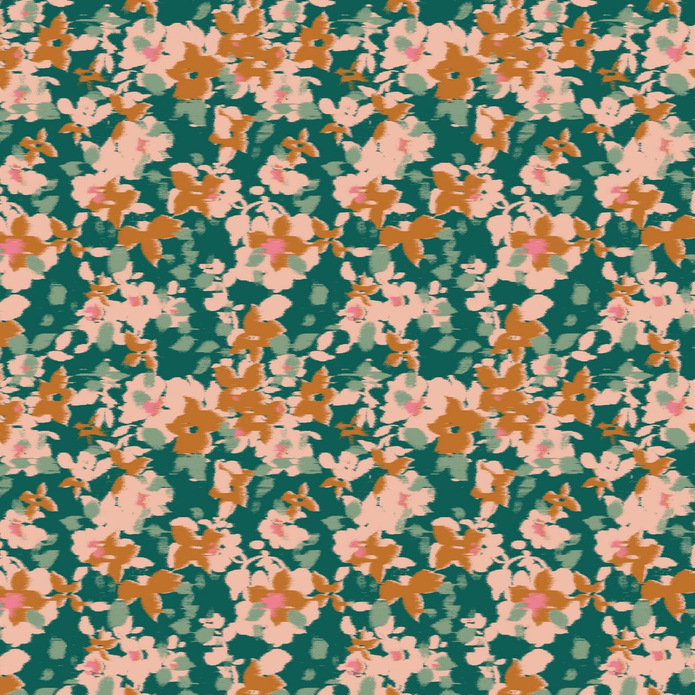 Jersey Fuzz Flowers auf Dunkelgrün Digital BIO